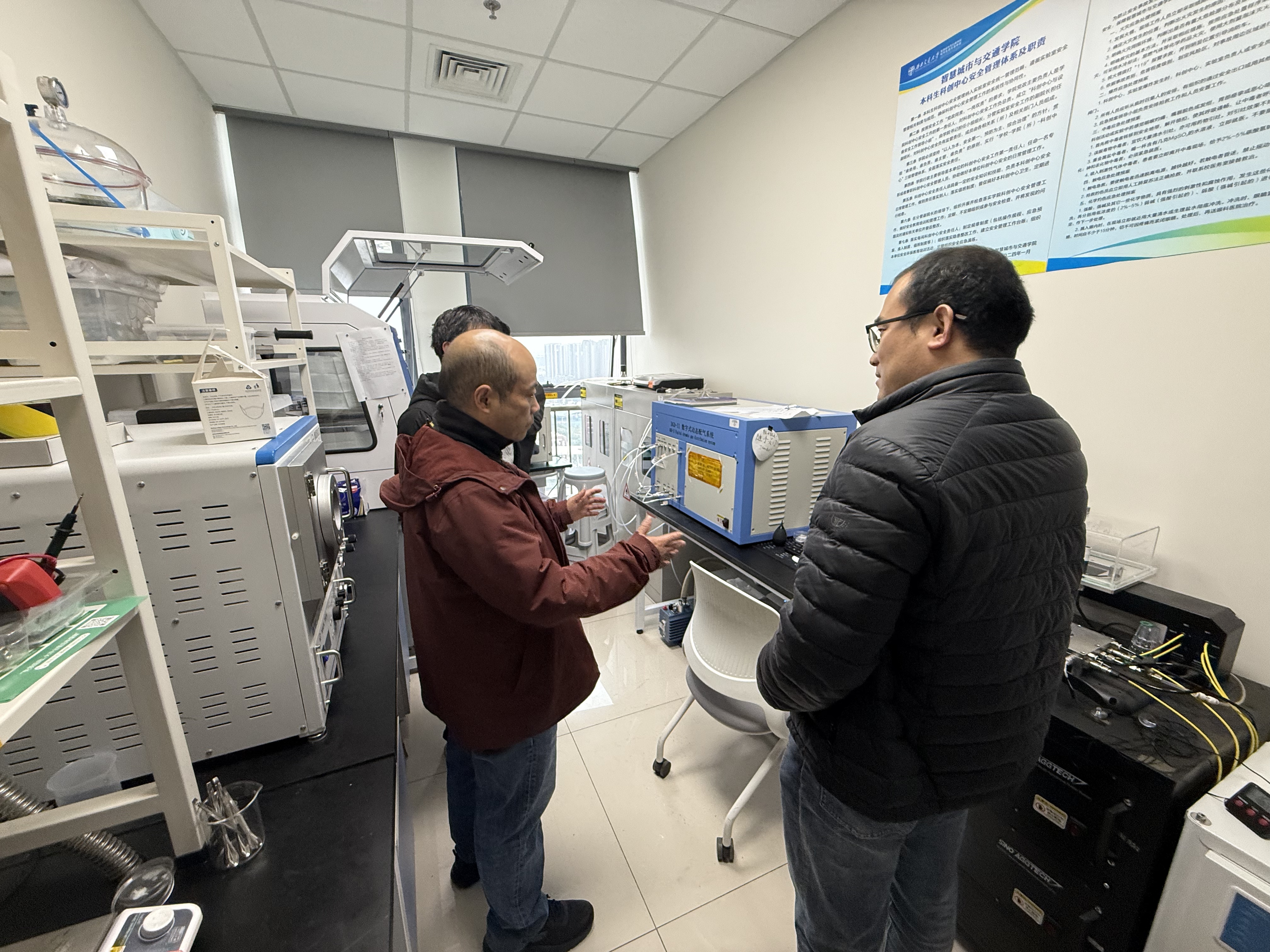 为深入贯彻落实教育部及四川省教育厅关于春季开学安全工作的相关要求,切实加强春季开学期间实验室安全管理,确保校园安全稳定,按照学校统一部署,学院于2月26日至3月3日期间,由党委书记李涛、副院长马剑带队,依据教育部《高等学校实验室安全检查项目表(2024)》,对学院位于犀浦校区及九里校区的实验室进行了全面安全检查。