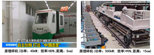 团队在国内率先提出并开展了轨道交通大功率动态无线供电技术的创新研究,突破了大功率/动态无线供电中基于组合式逆变器的功率提升技术、动态耦合调谐技术、分段供电平稳切换技术、鲁棒稳定控制等核心关键技术,实现了从10kW小功率/静态无线供电到500kW大功率/动态无线供电及其原理样机研制。2013年10月,成功研制国内首台40kW动态无线供电轨道原理样车,2017年中央电视台进行专门报道,多次接待国铁集团、四川省领导等莅临参观并试乘。经过团队十余年坚守大功率无线供电核心技术攻关,团队在大功率动态无线供电技术领域取得丰富研究成果,出版学术专著《轨道交通无线供电技术》,授权发明专利40余项,发表IEEE transactions 论文30余篇。正在致力于高速铁路无线供电的前瞻性基础问题研究和大功率无线供电技术在磁悬浮交通、港口AGV、特殊场景需求等领域的应用研究,为大功率动态无线供电的持续引领而不懈努力。
