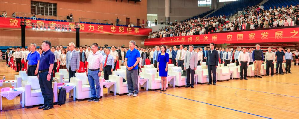 建校125周年发展大会”正式开始。全体成员起立,奏唱国歌。