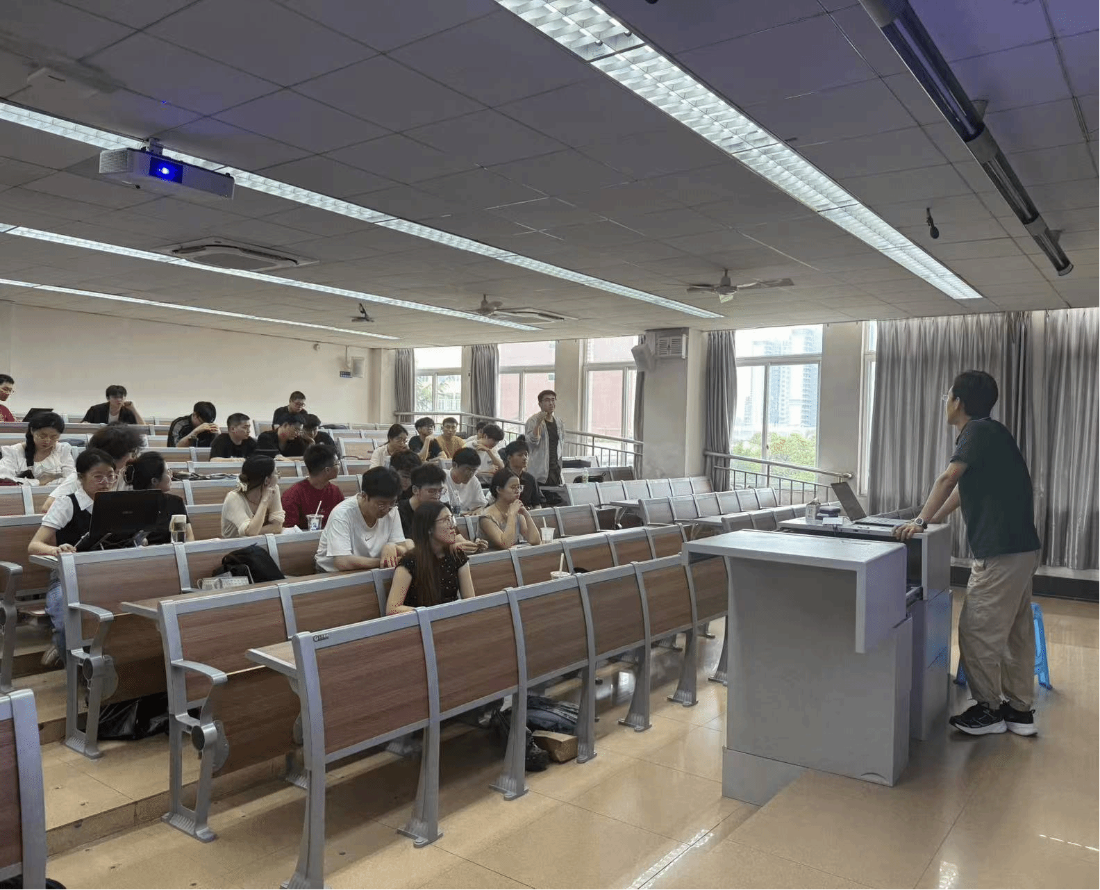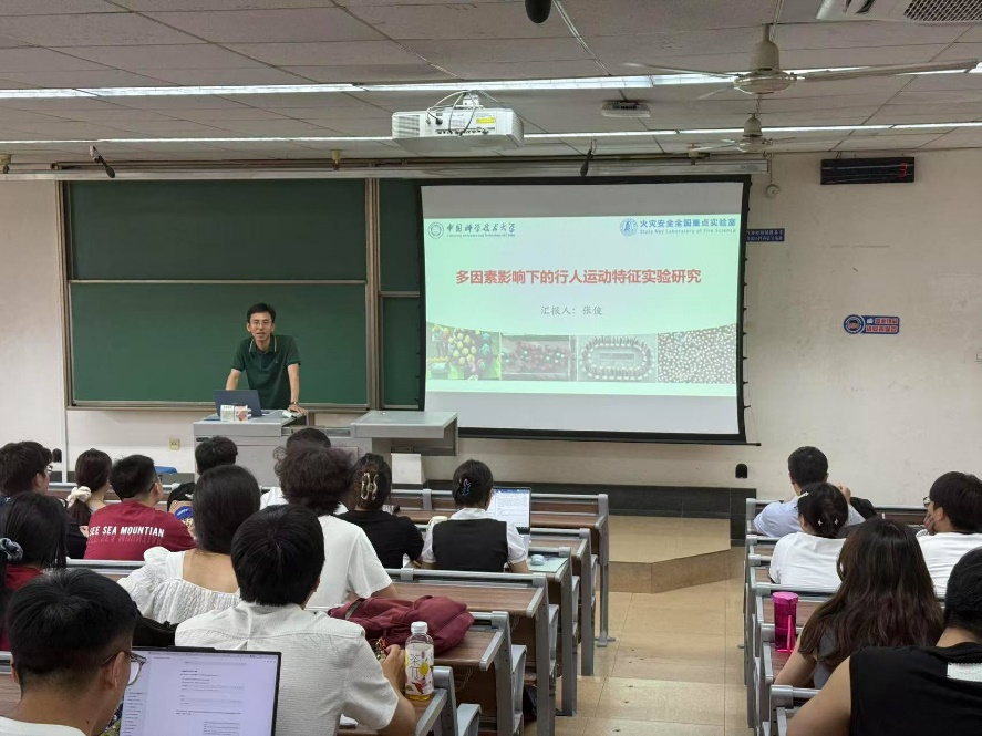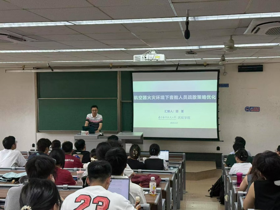 5月21日下午,中国科学技术大学火灾国家安全全国重点实验室张俊教授和南京航空航天大学民航学院副院长邵荃教授受邀在九里校区J4522教室分别开展题为《多因素影响下的行人运动特征实验研究》《航空器火灾环境下客舱人员疏散优化》人员疏散领域前沿讲座。马剑教授及100余名师生参加本次讲座。