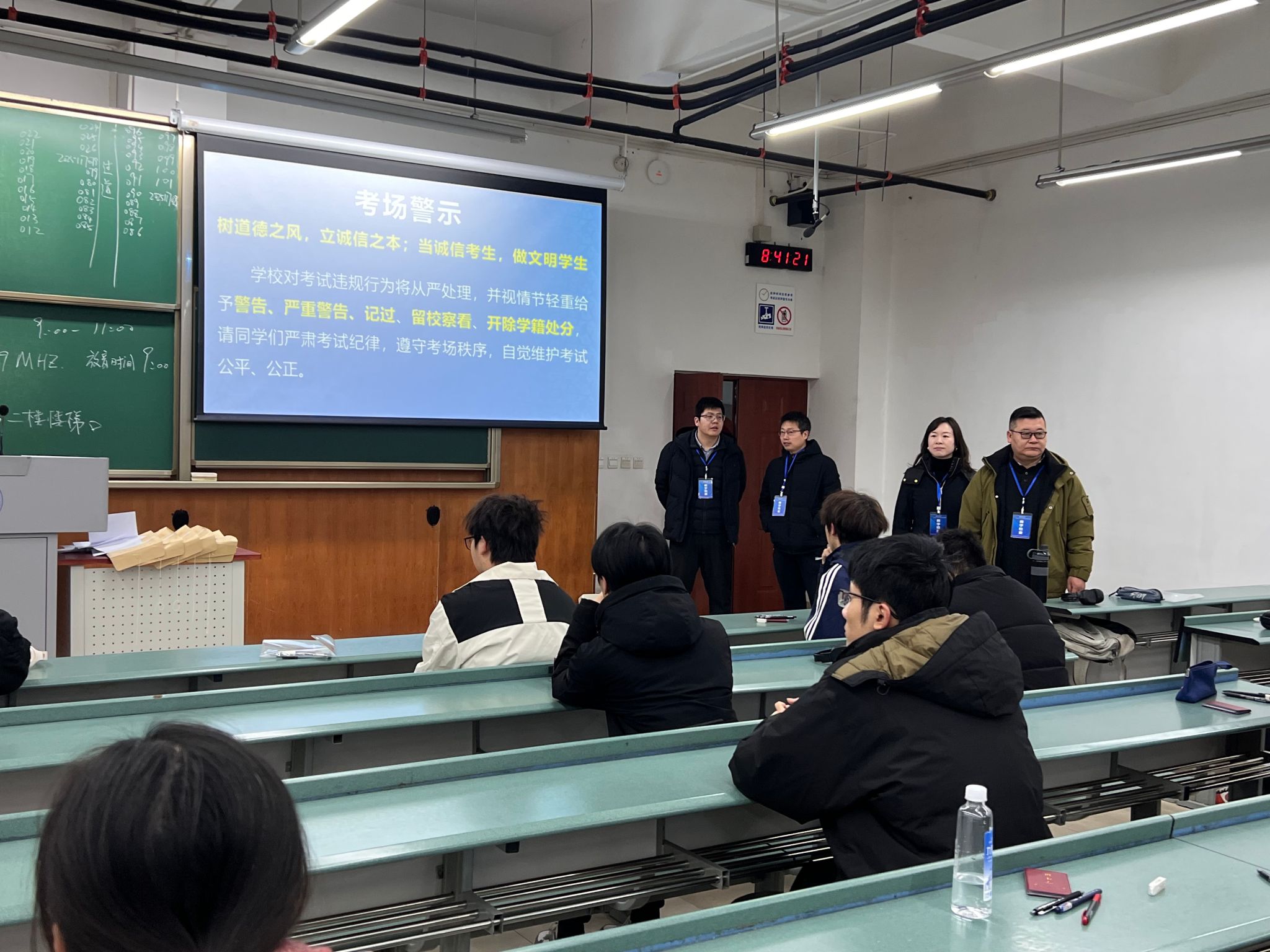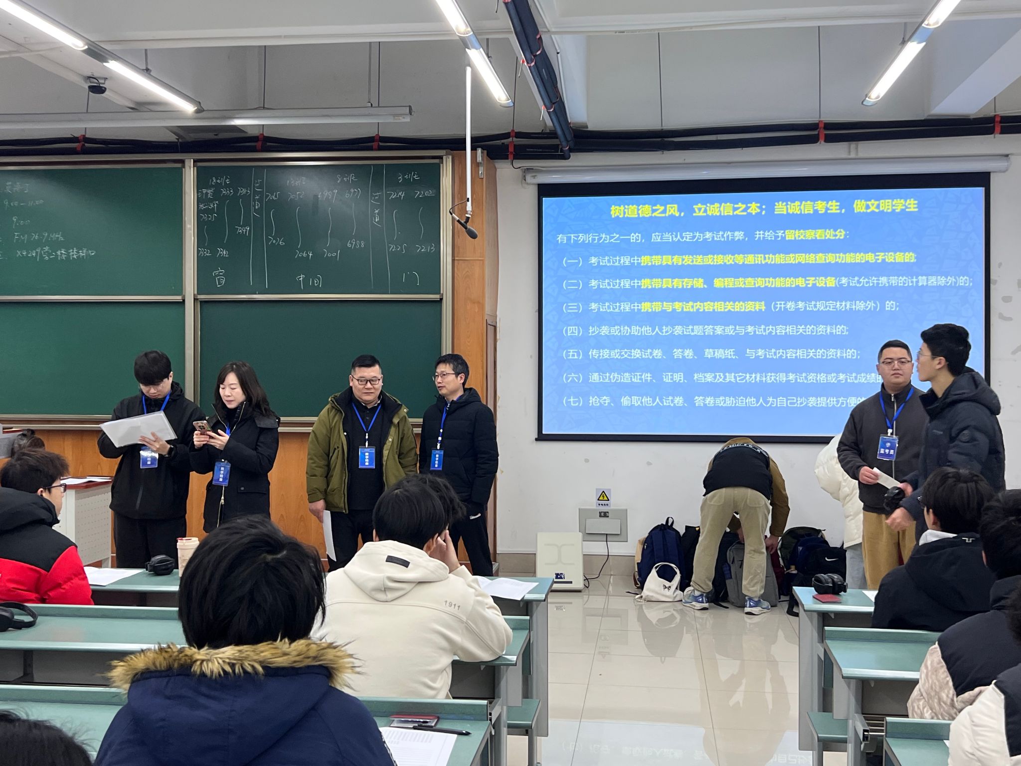 学院领导带队深入学院本科生和研究生考试各考场,重点围绕考场纪律、监考履职、考生状态三大方面进行细致检查与督导。从检查情况来看,监考老师均按时到岗,坚守监考底线,对违纪行为“零容忍”,切实维护考试公平。考生们按时到场,凭有效证件有序入场,自觉将手机等通讯设备关机后放入指定收纳袋,展现了当代大学生的自律意识与优良学风。