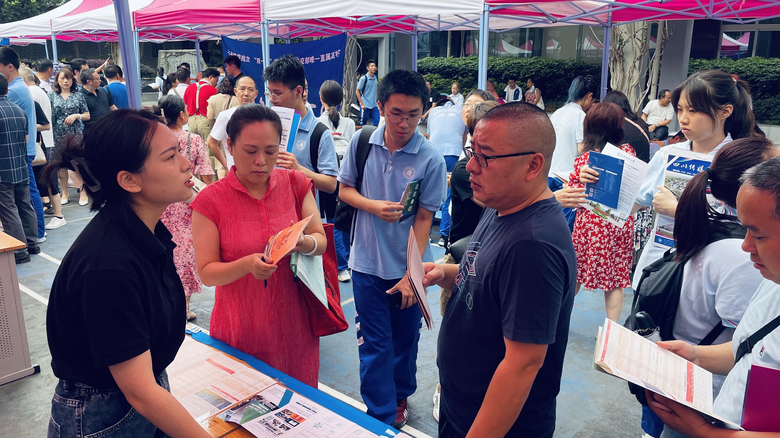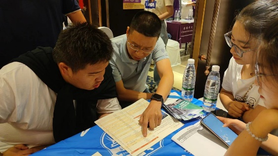 学院招生宣传工作小组成员经过统一学习培训、携带宣传资料、克服高温路远,开展现场招生咨询,与广大考生及家长面对面介绍学校、学院专业特色、解读报考政策、分享校园生活,指导考生志愿填报,现场气氛火爆!