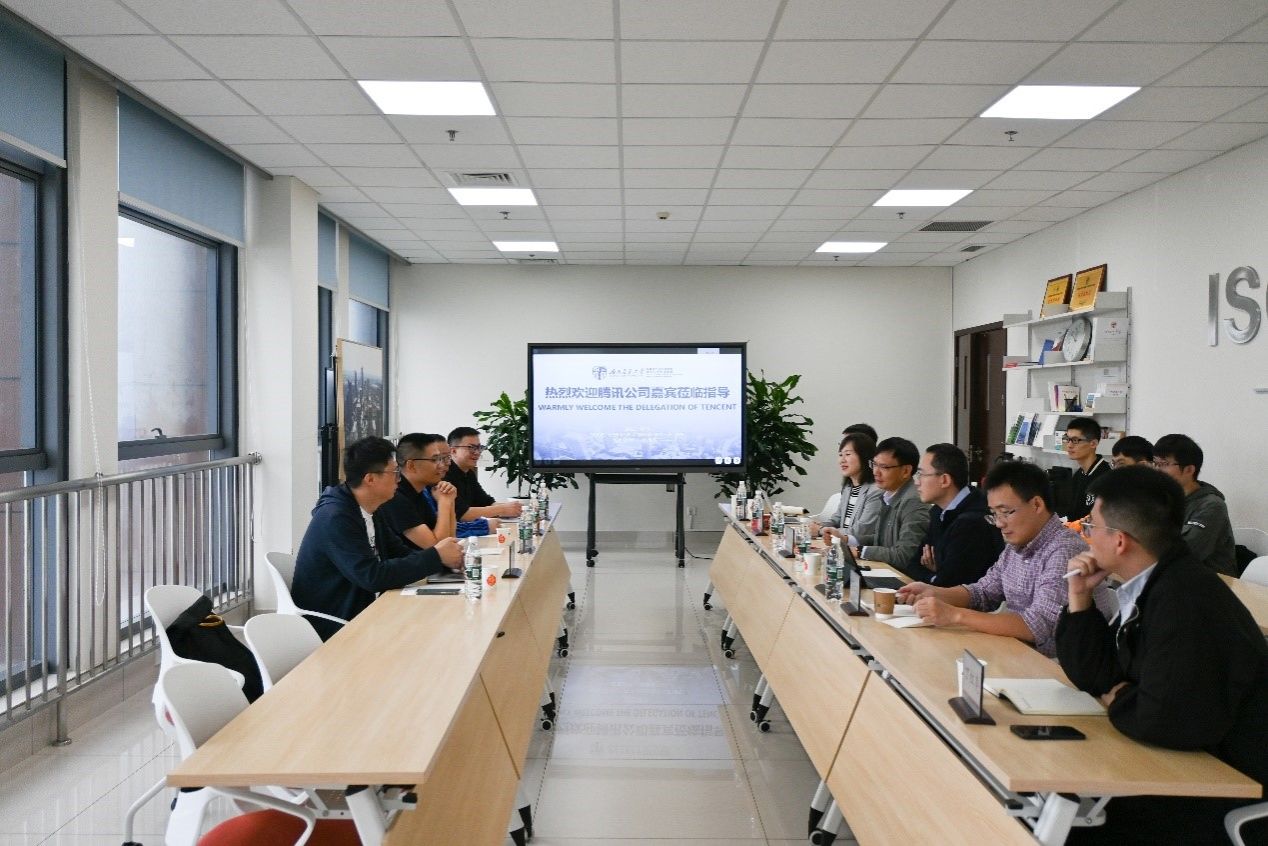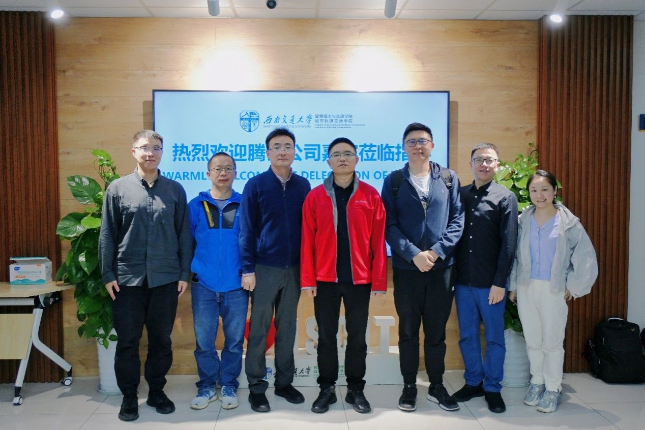10月11日,腾讯集团副总裁、腾讯西南总部总经理蔡光忠,腾讯IEG王者荣耀项目组AI应用拓展总监刘林、汪文俊,腾讯公共事务高级总监唐彭壮来访av影片 av影片 ,av影片 院长何正友、副院长孙湛博与蔡光忠副总裁一行交流座谈,智慧交通团队丁红亮、嵇昂以及学生代表参加座谈。