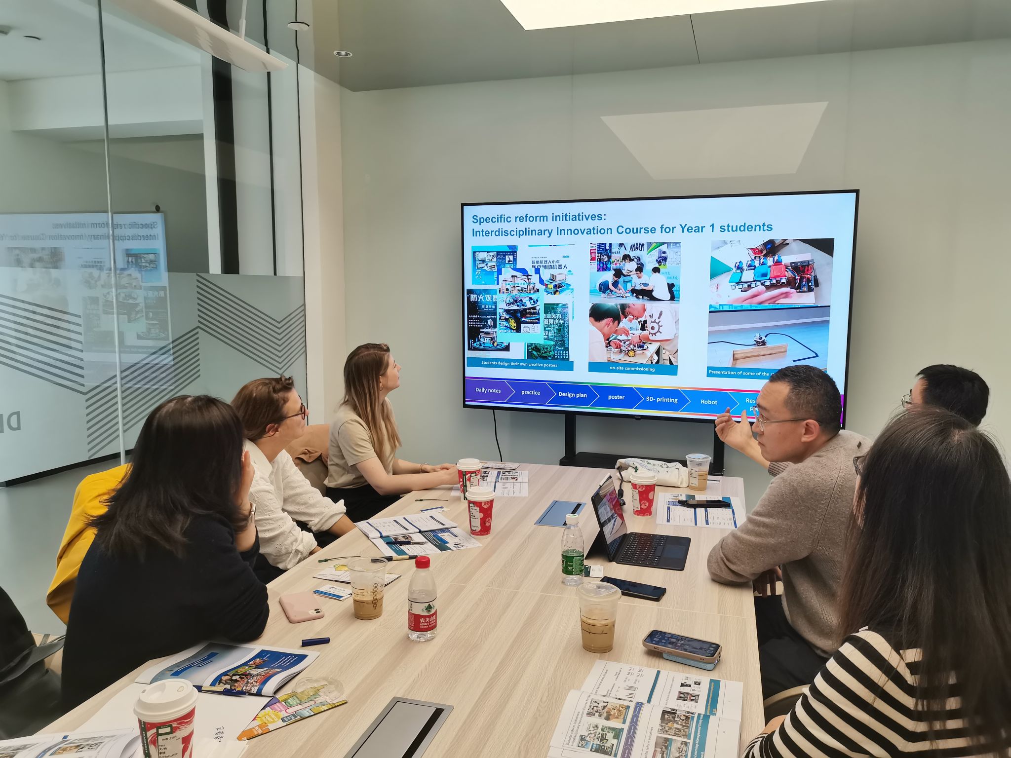 随后,双方进行了座谈交流。孙湛博首先介绍了成都及东部新区的整体情况,重点介绍了学院和成都东部(国际)校区的成立背景、发展历程、学科研究、专业设置、人才培养、师资力量和科技创新等方面的成效和情况。会上,双方就联合人才培养、项目研究、国际合作和师资交流等内容进行了具体深入的沟通和分享,为下一步深化合作奠定基础。