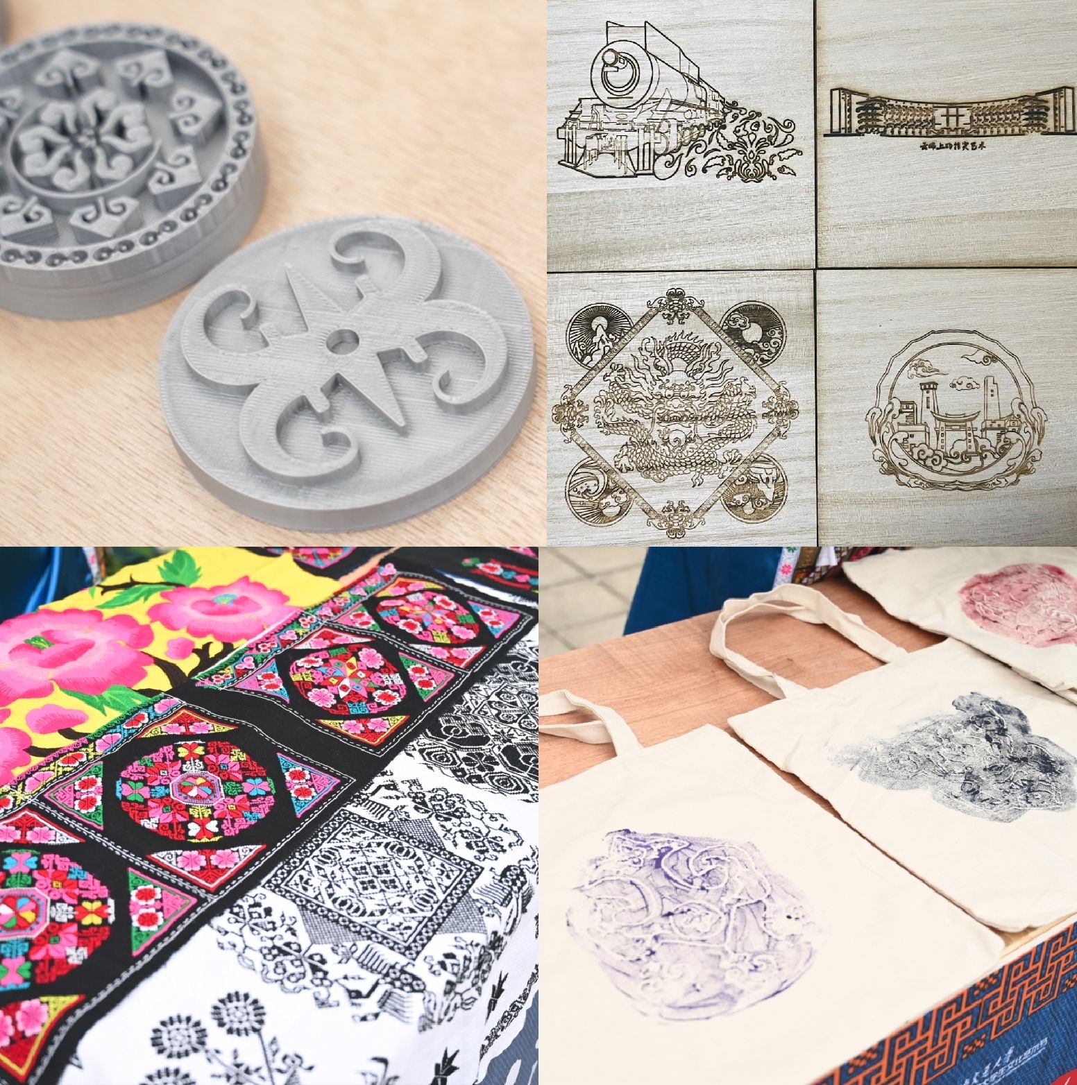 当非遗遇上新工科,会碰撞出怎样的火花?同学们将交大标志性建筑、新工科元素与羌族传统纹饰中的太阳花、羊角纹和“羌”的象形文字巧妙结合,绘制出精美又不失创意的图案,并利用激光雕刻和3D打印技术将图案制作成实物。摩挲每一处纹路,既是与民族的劳动结晶进行一场灵犀对话,更是将现代技术的智慧凝聚指尖。