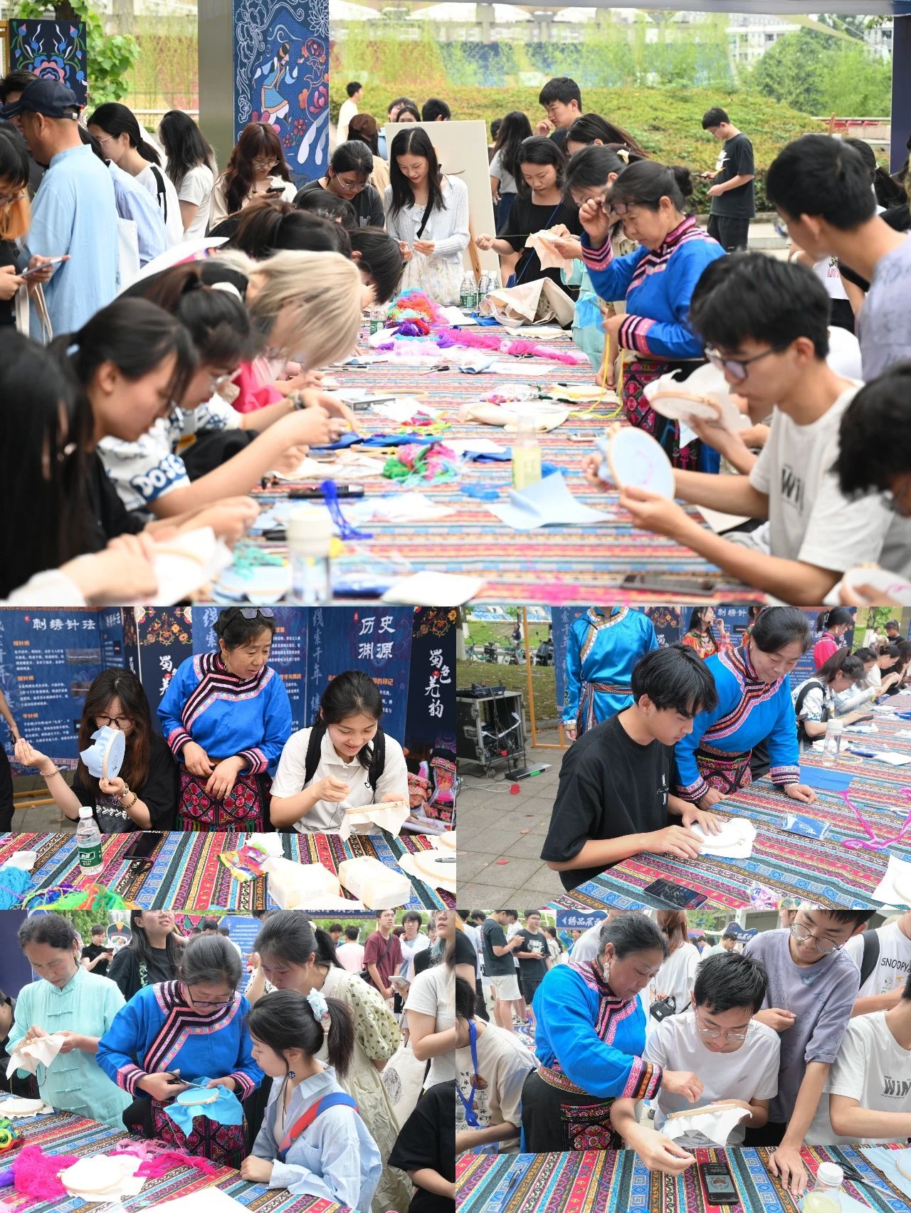 第十一届大学生文化艺术节特色活动——“蜀色羌韵”羌绣非遗文化集市,在犀浦校区体育馆西入口广场顺利举行,近800人参与本次活动。