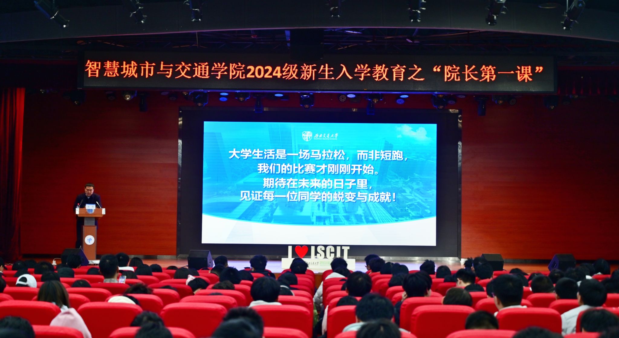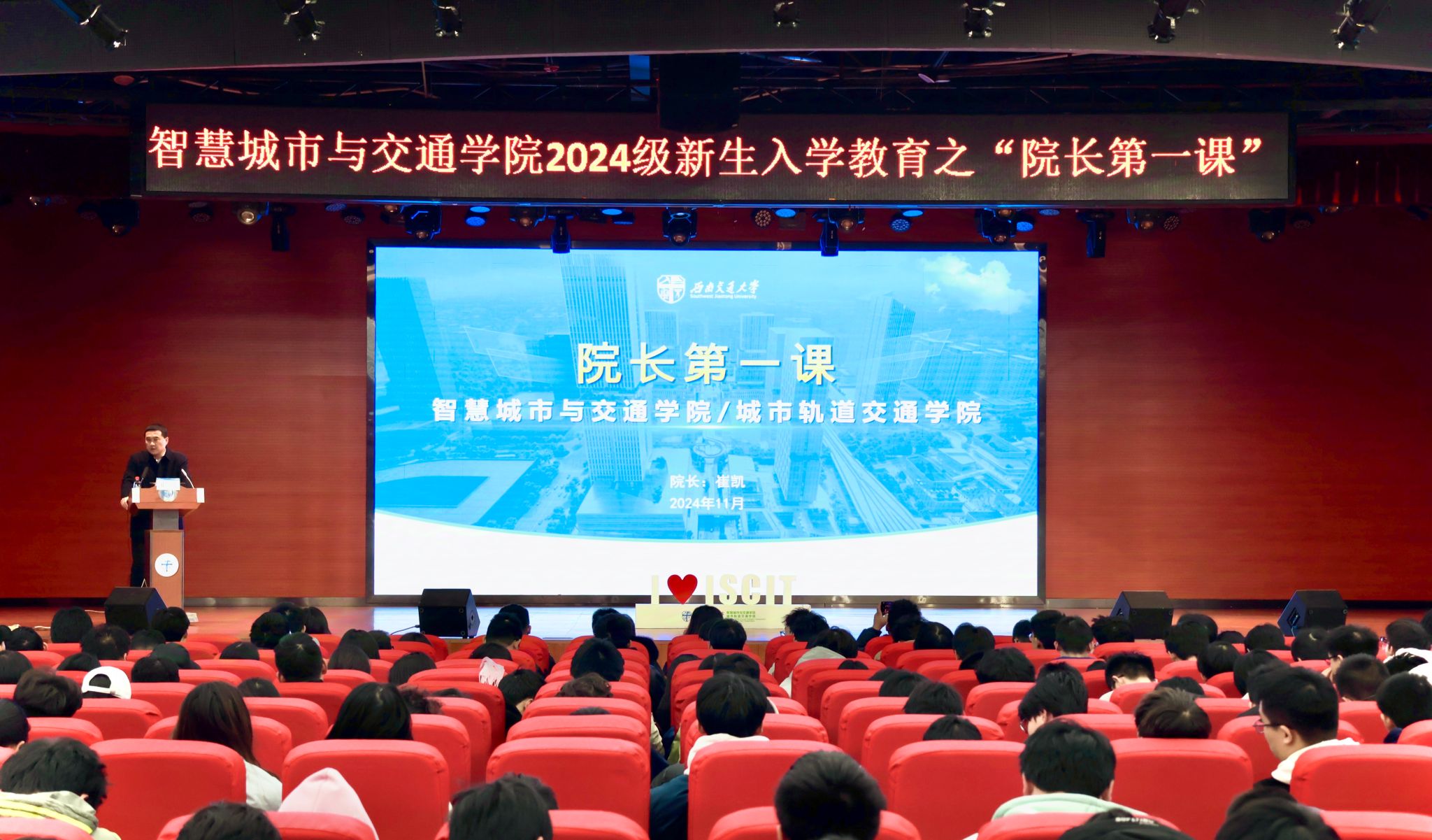 院长崔凯于犀浦校区大学生活动中心为全体2024级新生讲授“院长第一课”。