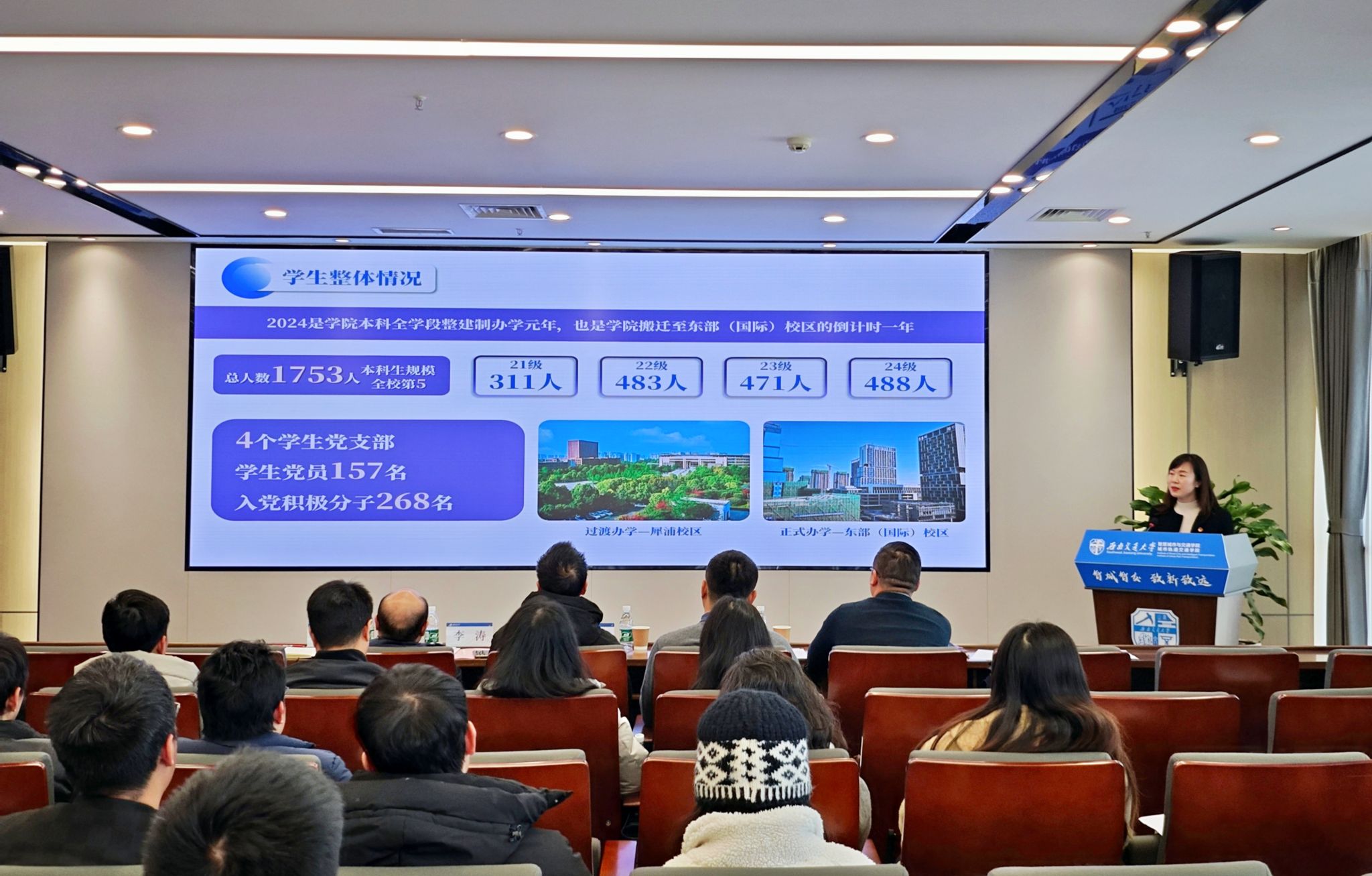 召开2024年终全院教职工大会,开展2024年度领导班子述职测评、党建满意度测评和中层领导干部述职测评。组织部正处级组织员孔书祥,校长助理、院长崔凯,党委书记李涛,党委副书记夏夏,副院长姬晓旭及全院教职工参会。会议由姬晓旭主持。