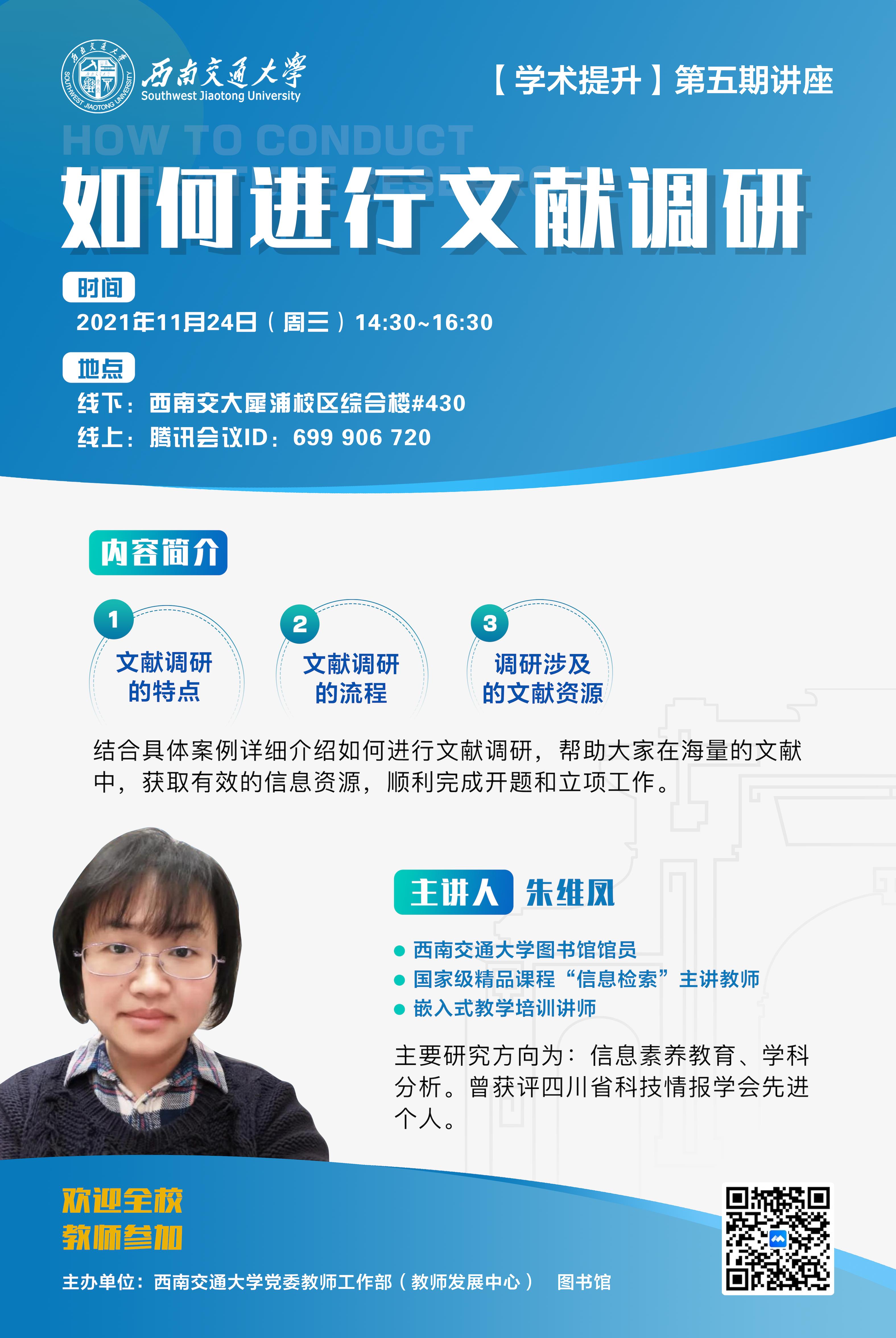 本次讲座将围绕文献调研的特点、文献调研的流程、调研涉及的文献资源,结合具体案例详细介绍如何进行文献调研,帮助大家在海量的文献中,获取有效的信息资源,顺利完成开题和立项工作。