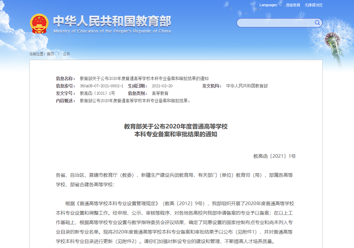 以此次备案审批通过为契机,学院将持续加强新专业建设,瞄准未来技术发展趋势,创新引领示范,抢占交叉学科领先阵地。新专业计划2021年进行首次招生。