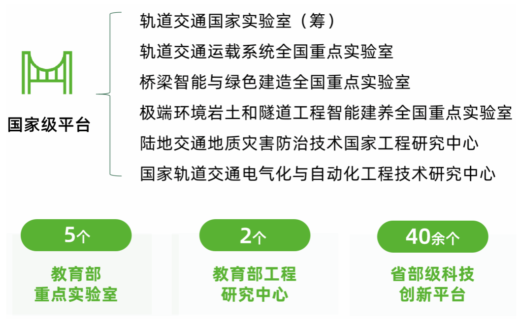 、前沿科学研究院和未来技术研究院等前沿交叉学科特区,积极锻造国家轨道交通战略科技力量、引领未来轨道交通发展。