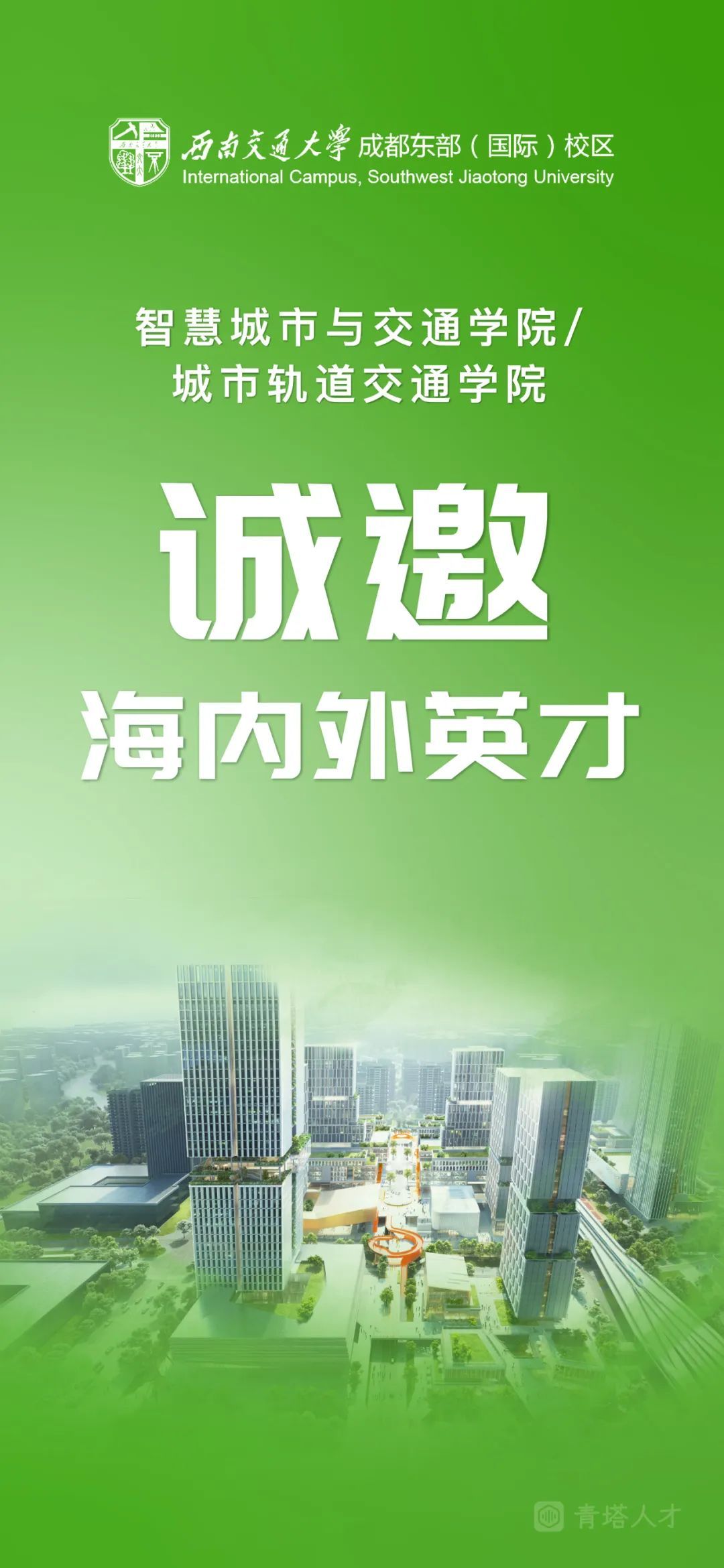 “双一流”建设的新引擎、“新工科”改革示范的新平台、人才引进的新特区、国际化办学的新门户,正在面向全球延揽一流人才,为有志于投身新时代智慧城市和智慧交通发展事业的精英创造一流工作氛围和广阔发展空间。