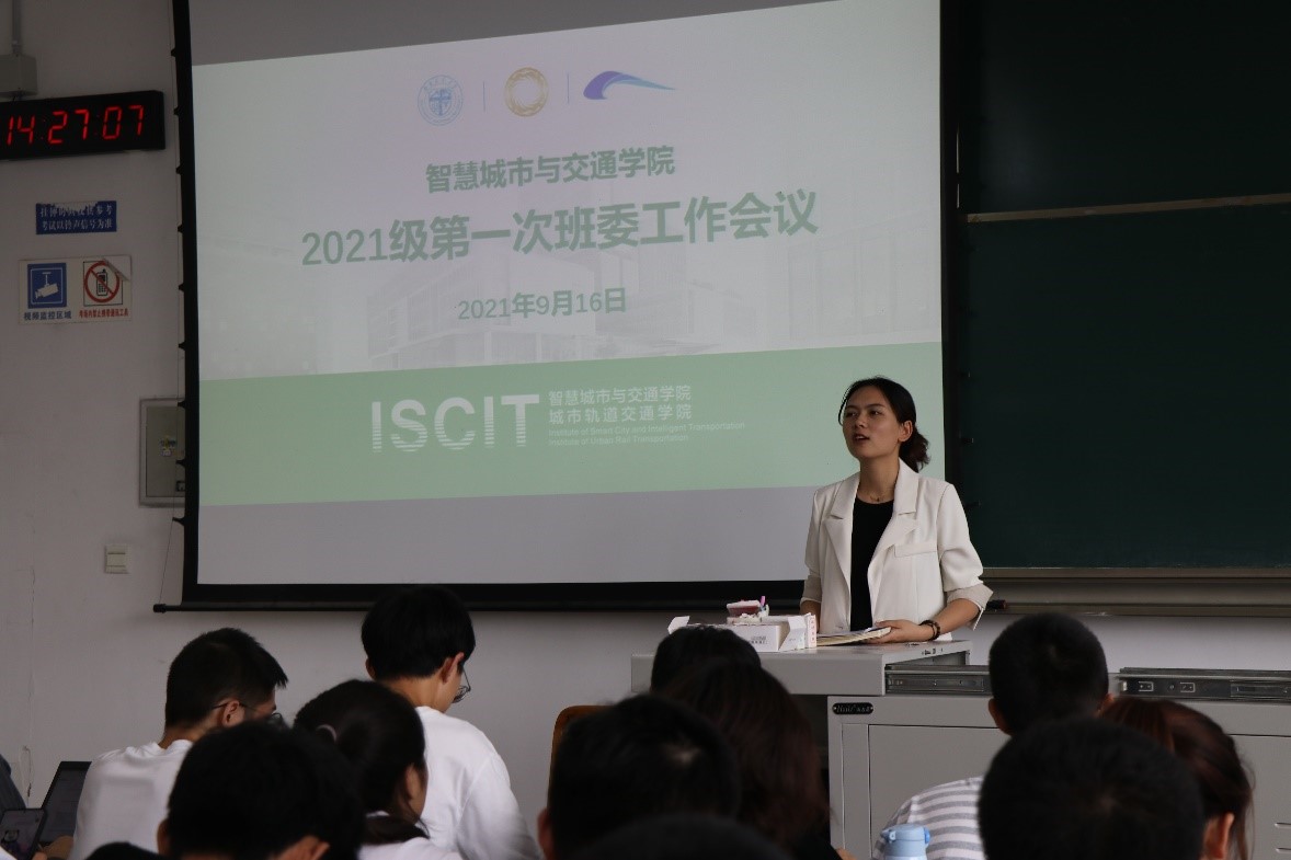 2021级班委在2号教学楼2431教室举行第一次工作会议,学生管理办公室主任夏夏老师,2021级辅导员于博伦老师、敬春元老师、宋治东老师参加会议。