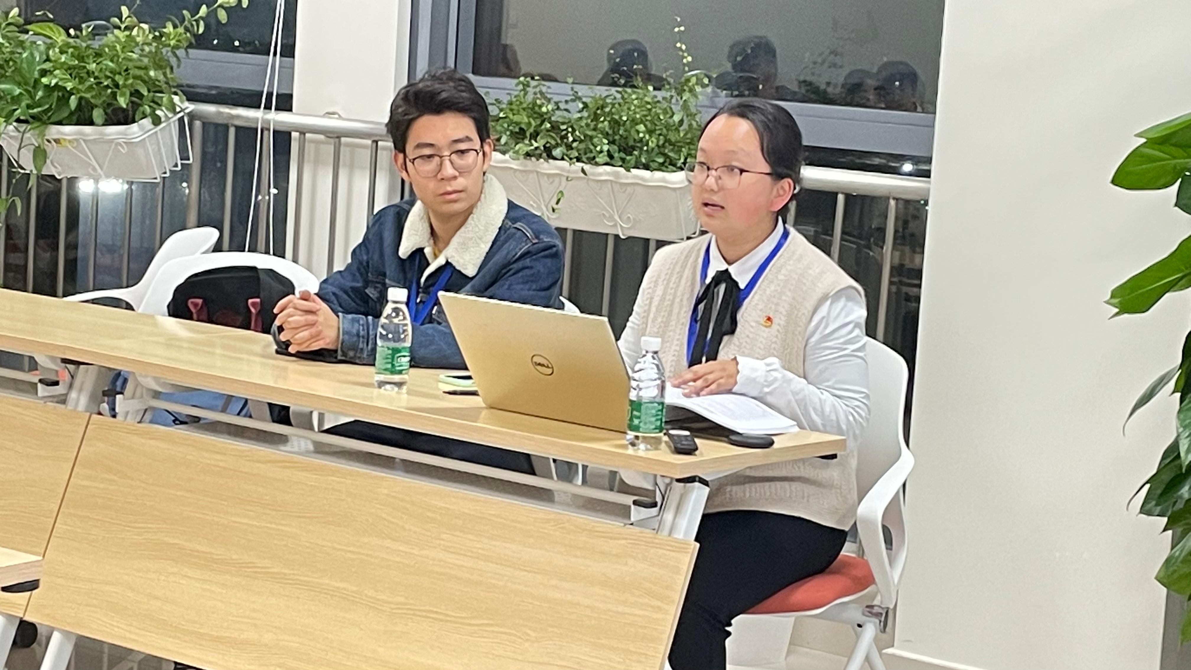 周朝梦首先从指导思想、工作原则、工作目标、基本任务四个方面介绍了团支部的基本工作,分享了先进工作经验。