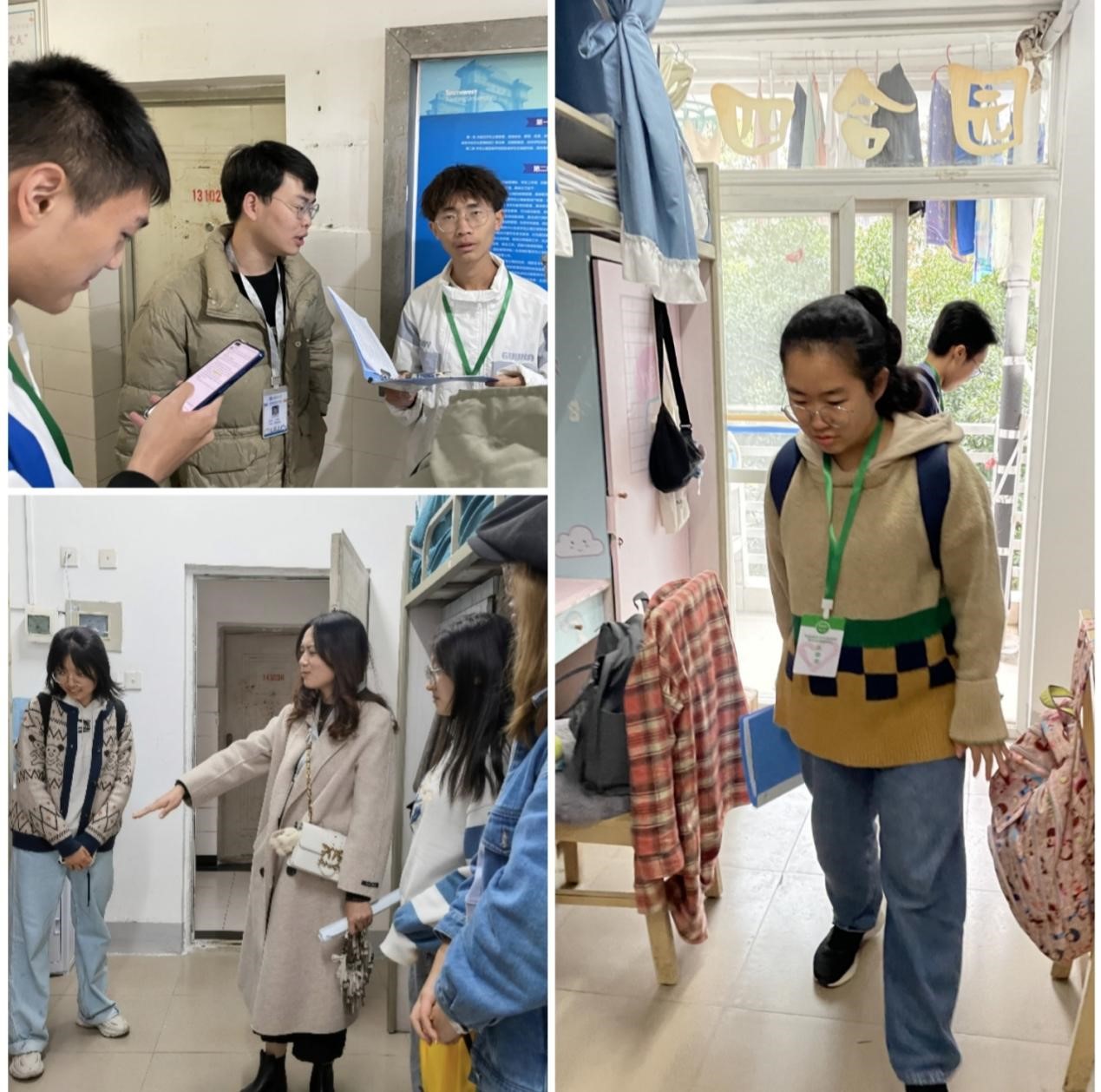为加强学生宿舍建设管理,帮助同学们把宿舍建成安全、文明、整洁、团结、和谐的学生之家,辅导员带领智小青进行了宿舍安全卫生检查。在检查过程中,智小青们严格按照管理规范对每一间宿舍的安全、文化、卫生进行评分。同时,针对宿舍存在的问题,辅导员主动指出并提出改进建议。宿舍安全卫生检查不仅锻炼了智小青的工作能力,而且拉近了师生间的距离,同时提高了同学们的寝室安全卫生意识,有利于同学们创造良好的宿舍卫生环境。