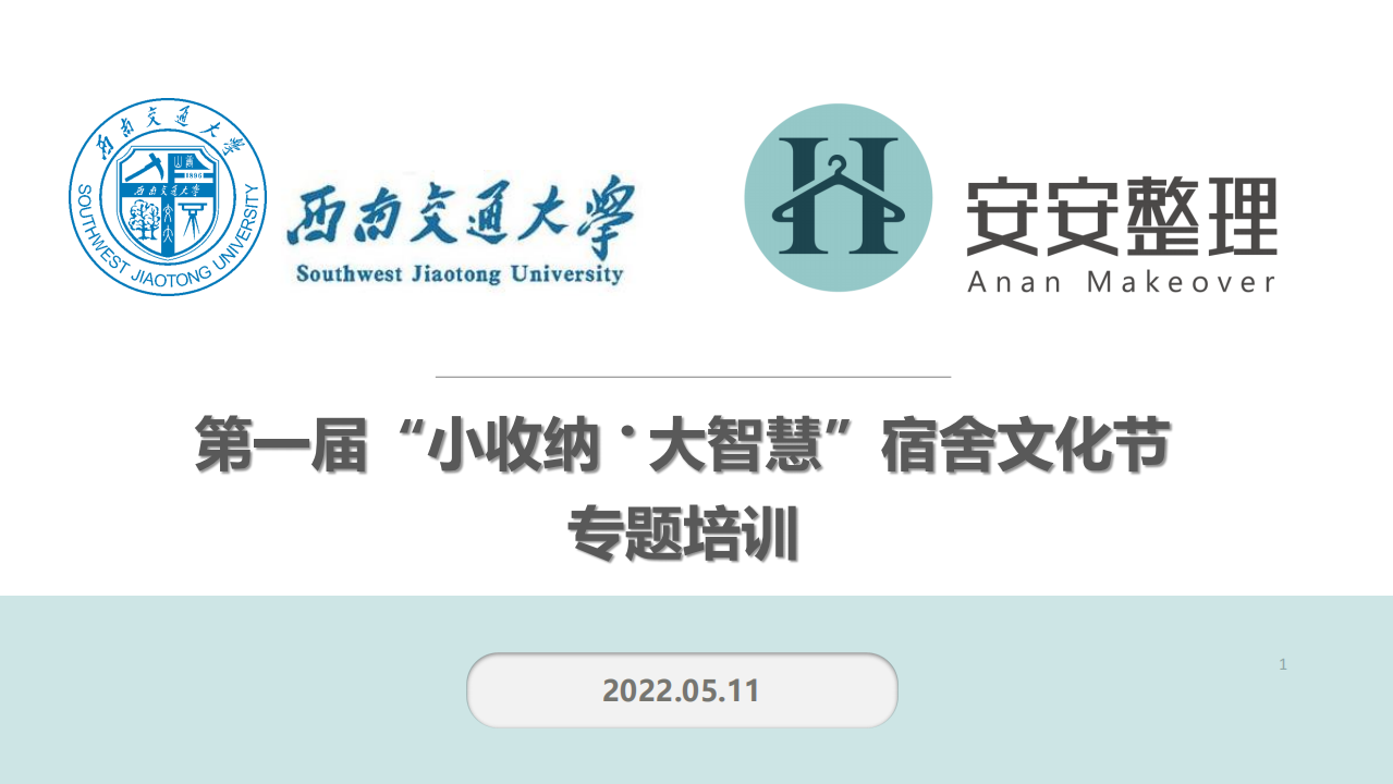 承办的第一届“小收纳·大智慧”宿舍文化节于5月11日晚7:30以线上培训的形式启动。