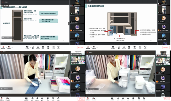 5月11日,“小收纳·大智慧”宿舍文化节专题培训于线上举行,来自各学院200余名同学参加培训。整理师殷晓冬以收纳整理的背景、意义和价值为切入点,结合学校学生宿舍的空间特点,以饱含艺术性、科学性及技术性的实景互动形式为同学们展示了人与环境的相互关系以及如何合理进行宿舍空间规划。整理师姜琼就衣物、裤子和数据线等学生宿舍常见物品进行收纳实践培训,分享了一些有效、实用的收纳整理方法。