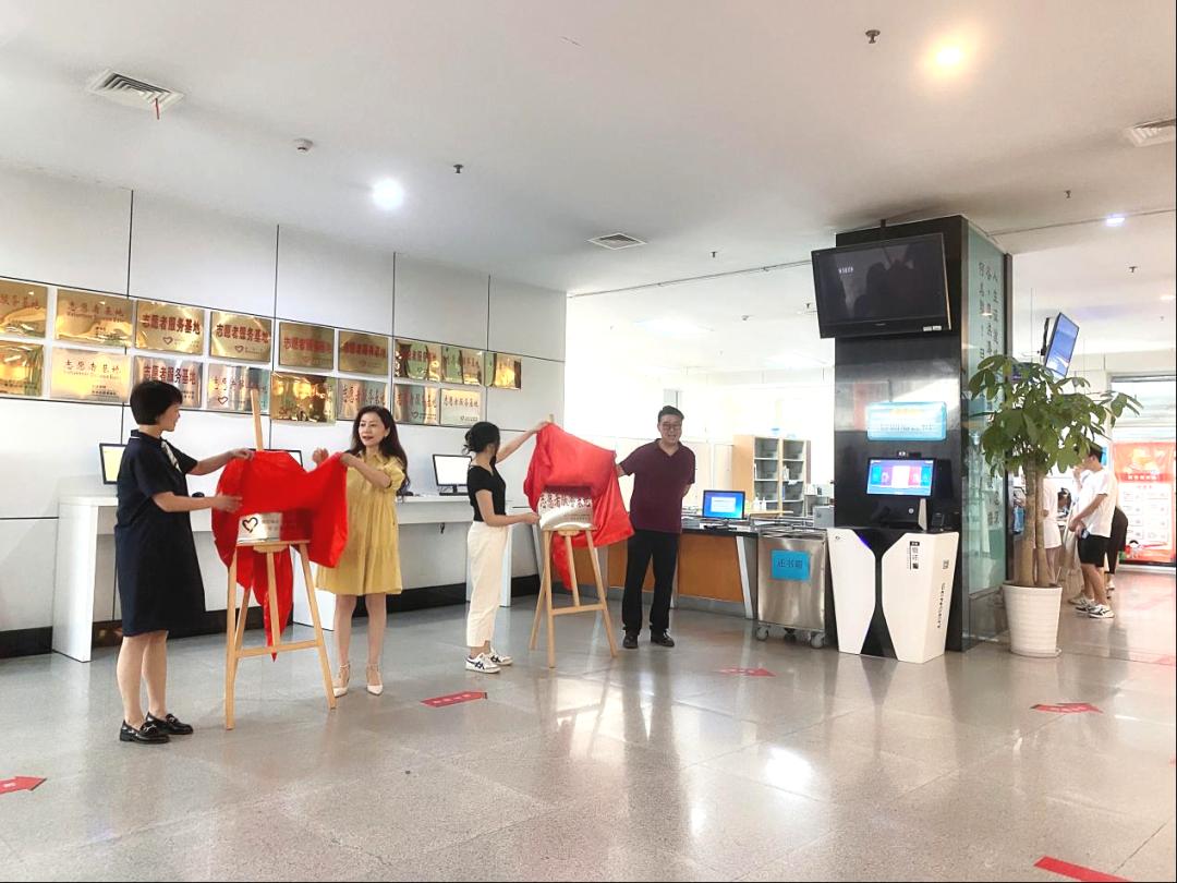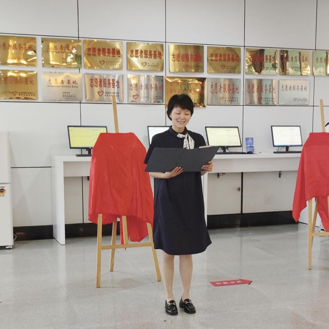 随后,刘文华、王洋、于博伦和李萍共同为志愿者服务基地揭牌。