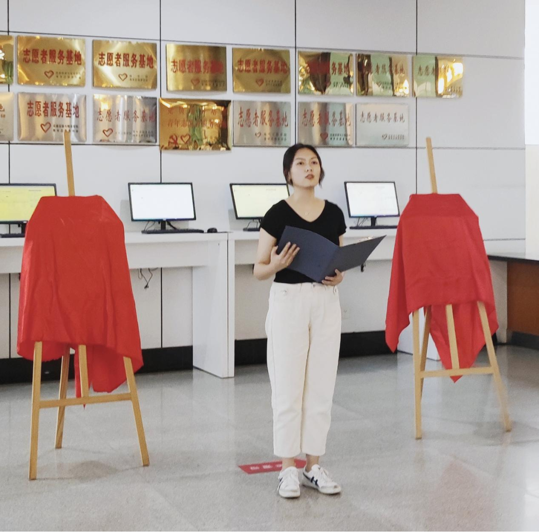 辅导员宋治东和计算机与人工智能学院辅导员徐洁以及图书馆志愿者基地、两个学院青年志愿者协会志愿者参加仪式。揭牌仪式由图书馆犀浦读者服务部副主任王洋主持。