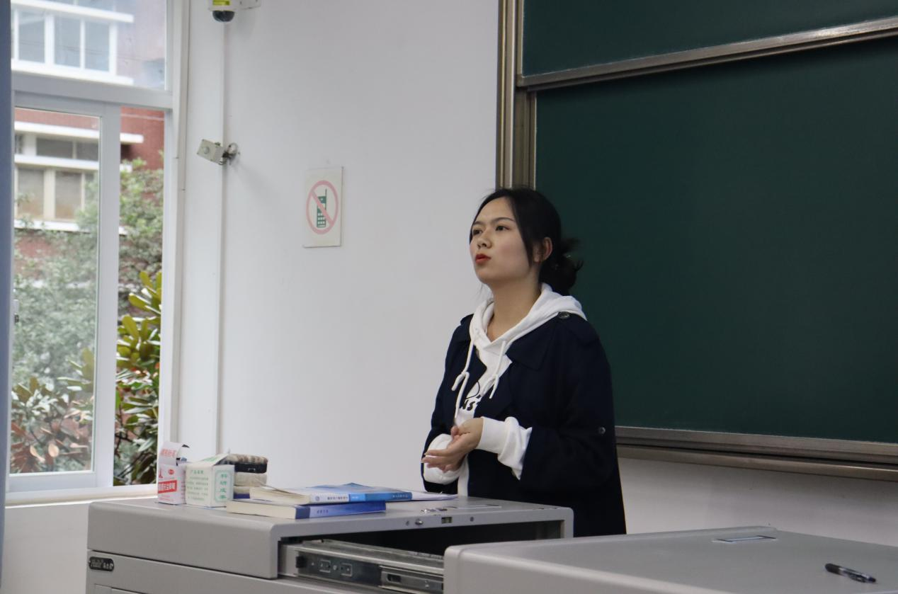 接下来由智能制造2021-02班团支书王少宁进行团支部工作介绍,她指出要有具体的工作计划和规划,对组织的团课和团日活动进行充分的准备,更要重视活动和记录的规范化。