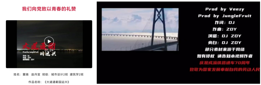 在认真学习专业课程的同时,董婧也积极参加学生工作与各类志愿、文体活动。她在学院中担任学生园区自我管理委员会办公权益部部长,参与组织了大一学年所有宿舍检查工作。她多次参加园区建设、疫情防控等志愿服务工作,并两次参加云支教活动,陪伴孩子们度过有意义的假期。在建党百年之际,董婧与朋友共同创作了一首歌曲,用青春告白祖国。2022年,她又创作了一首歌曲献礼成渝铁路建成通车70周年,并制作微视频在网络平台投稿。