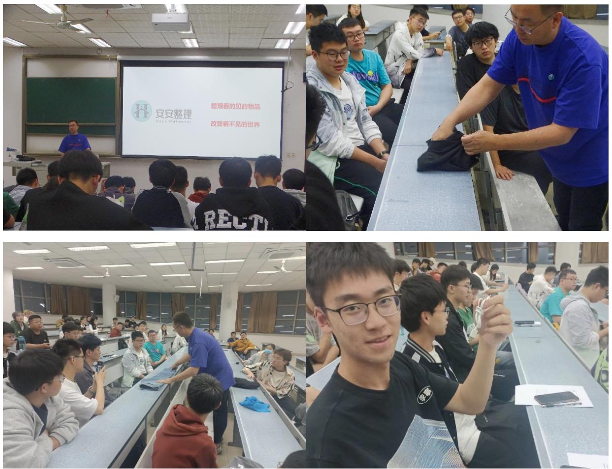 5月11日,“小收纳·大智慧”宿舍文化节专题培训线下开展,培训邀请安安整理专业收纳师,来自各学院100余名同学参加。收纳师殷晓冬从收纳行业起源与发展、微空间收纳方法、整理收纳原则、小物推荐、DIY旧物改造等方面对整理收纳进行系统性的讲解和分享。殷晓冬就衣物、裤子和数据线等学生宿舍常见物品进行收纳实践培训,分享各种有效、实用的收纳整理方法,帮助同学们将宿舍的“小空间”变成储物的“大容量”,从宿舍杂乱这一“小问题”体现整理收纳的“大智慧”。