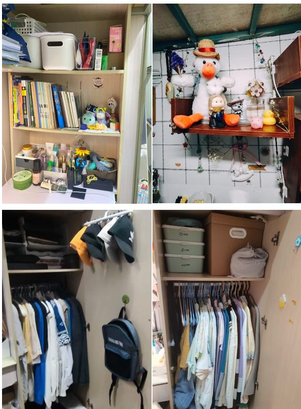 本次收纳比赛共有57支队伍参加,5月13日至5月25日,参与队伍自行制定收纳方案,对宿舍进行整理收纳。参与队伍根据培训所学,结合宿舍特点,充分发挥自己的收纳能力与创意。参与队伍整理收纳成效显著,各宿舍整洁情况、空间利用率、美观程度等方面均有显著提升。