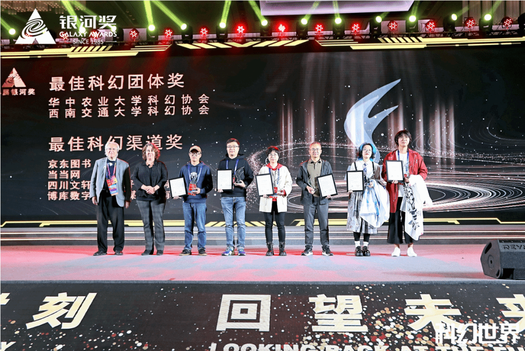 银河奖由科幻世界杂志社创办于1985年,以“银河”为名,取其“群星会聚”之意,旨在助力中国科幻写作从稚嫩走向成熟,是中国历史最悠久的科幻奖项,也是公认的中国科幻最高奖。其中最佳科幻团体奖在2017年第28届“银河奖”颁奖典礼上首次颁发,自银河奖最佳科幻团体奖申报开始,学校科幻协会踊跃参与、积极筹备、重点组织,最终以优越的社团成果分别于2020年和2023年获得第31届和34届银河奖“最佳科幻团体奖”的殊荣。