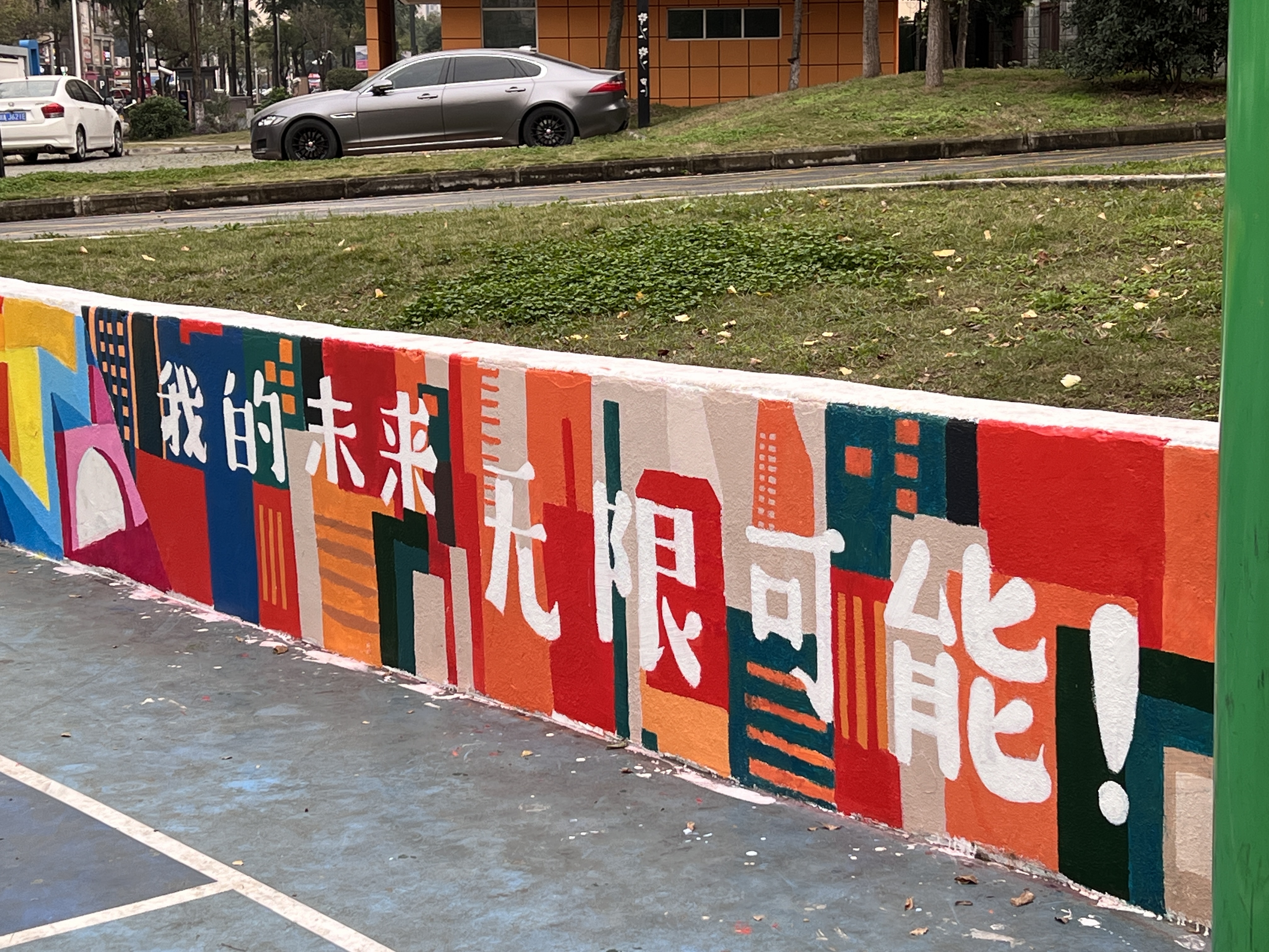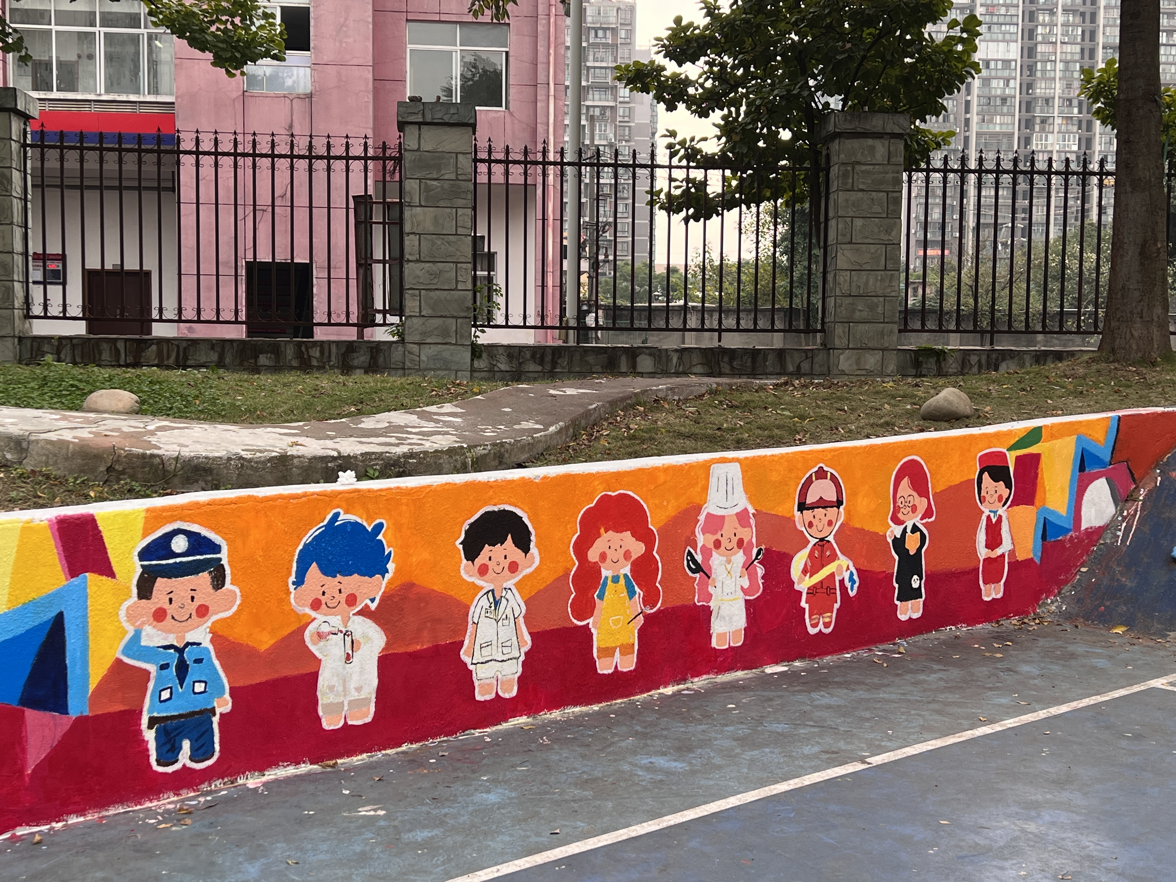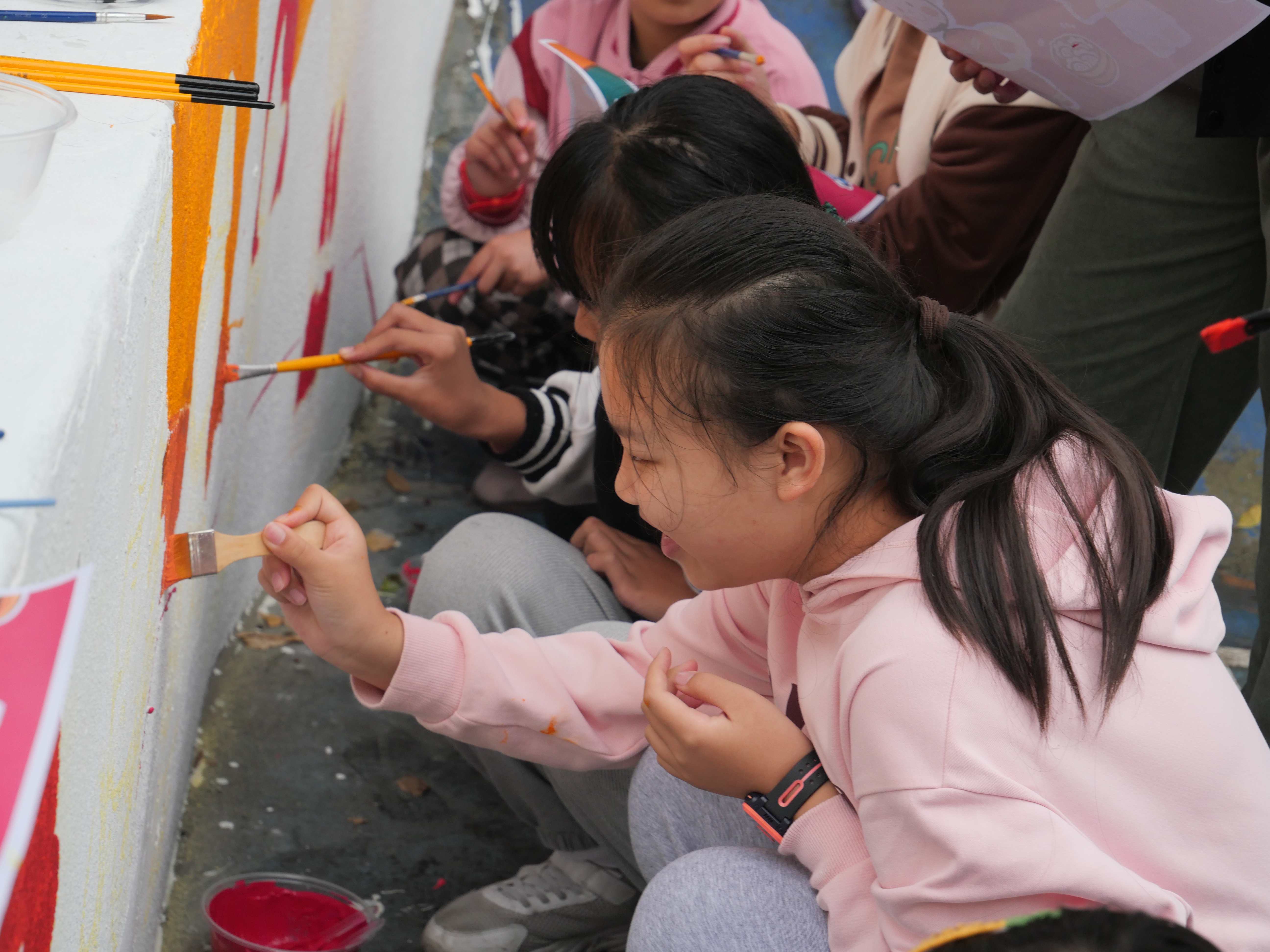 在实践过程中,同学们分工明确、井然有序,并在社区工作人员的协助下带领小朋友们共同完成墙绘涂装改造。活动结束后,团支部收到了社区工作人员及参与小朋友们的一致好评。