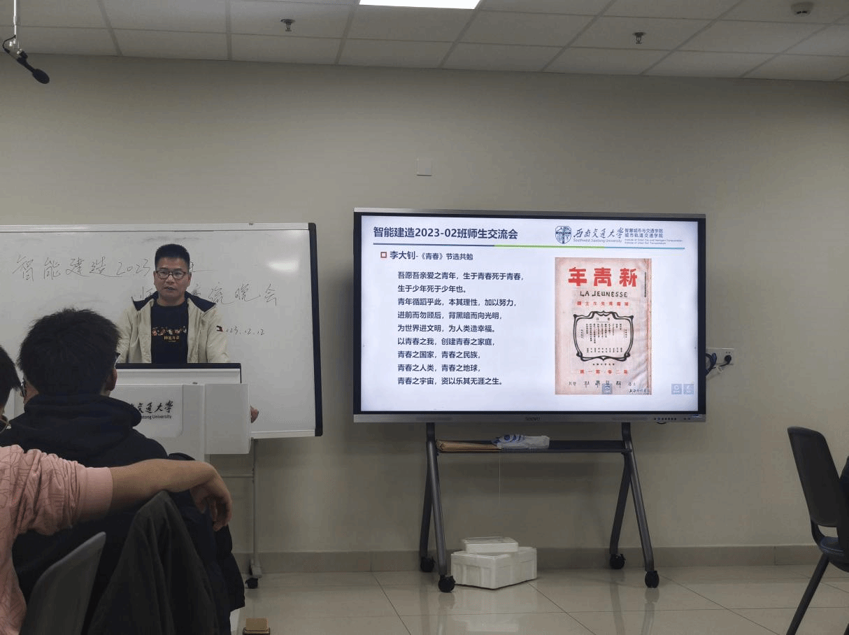 学院青年讲师团成员、智能建造系教师鲍玉龙,开展以“锤炼奋斗精神,厚植青年担当”为主题的课程,他以李大钊同志的《青春》为展开,告诉同学们回首过去,最可贵的是奋斗;展望未来,最可靠的仍然是奋斗,我辈青年在路上!