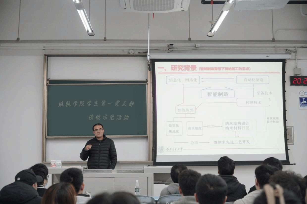 学院青年讲师团成员、智能制造与装备系副教授赵志俊深入学生党支部,分享了智能制造领域的发展现状与发展方向,并讲述他在微纳米加工与传感技术研究方面的成果与心得,为支部成员拓宽研究思路,开阔专业视野。