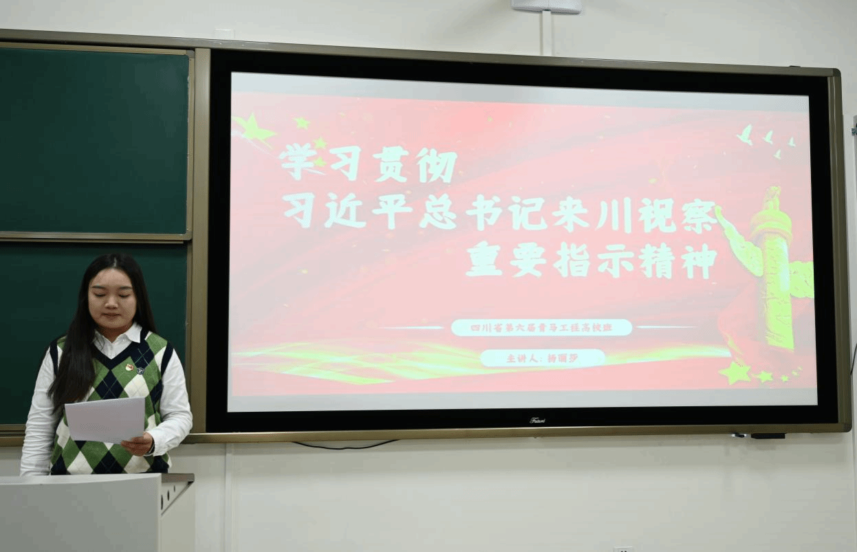 学院青年讲师团成员、院学生会主席杨丽莎面向青年开展以“学习贯彻习近平总书记来川视察重要指示精神”为主题的宣讲,她讲述了习近平总书记来川视察并出席成都大运会有关活动的重大意义,及习近平总书记来川视察重要指示精神的丰富内涵、核心要义和实践要求。