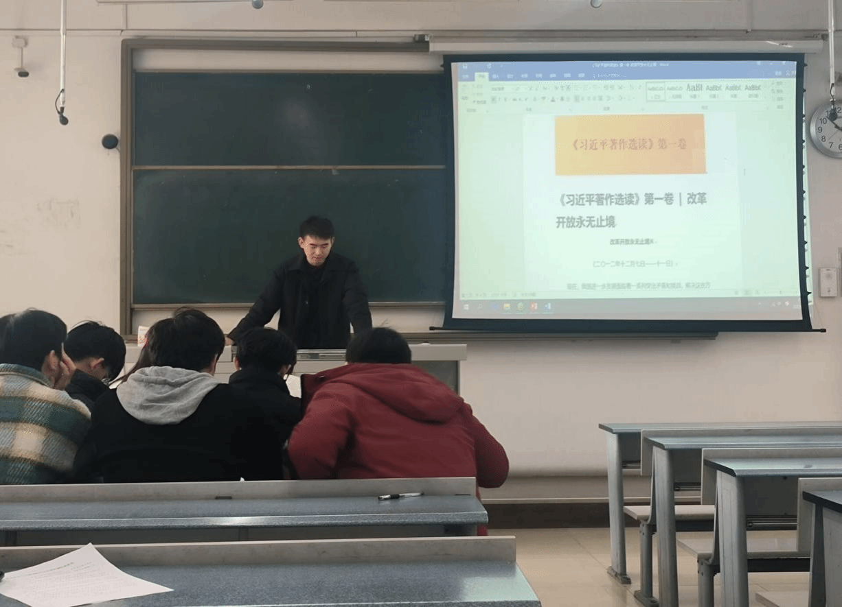学院青年讲师团成员、团委副书记敬春元,带领广大团员和青年学习习近平总书记在党的二十大精神研讨班上推进中国式现代化需要处理好若干重大关系的重要讲话精神。要求团员和青年要持续深入学习习近平新时代中国特色社会主义思想,做到学以致用、知行合一,做到学思用贯通、知信行统一,用马克思主义世界观和方法论处理生活和工作中的难题。随后大家共同学习《习近平著作选读(第一卷)》《习近平新时代中国特色社会主义思想专题摘编》《论党的青年工作》等内容,并围绕学习专题进行交流发言。