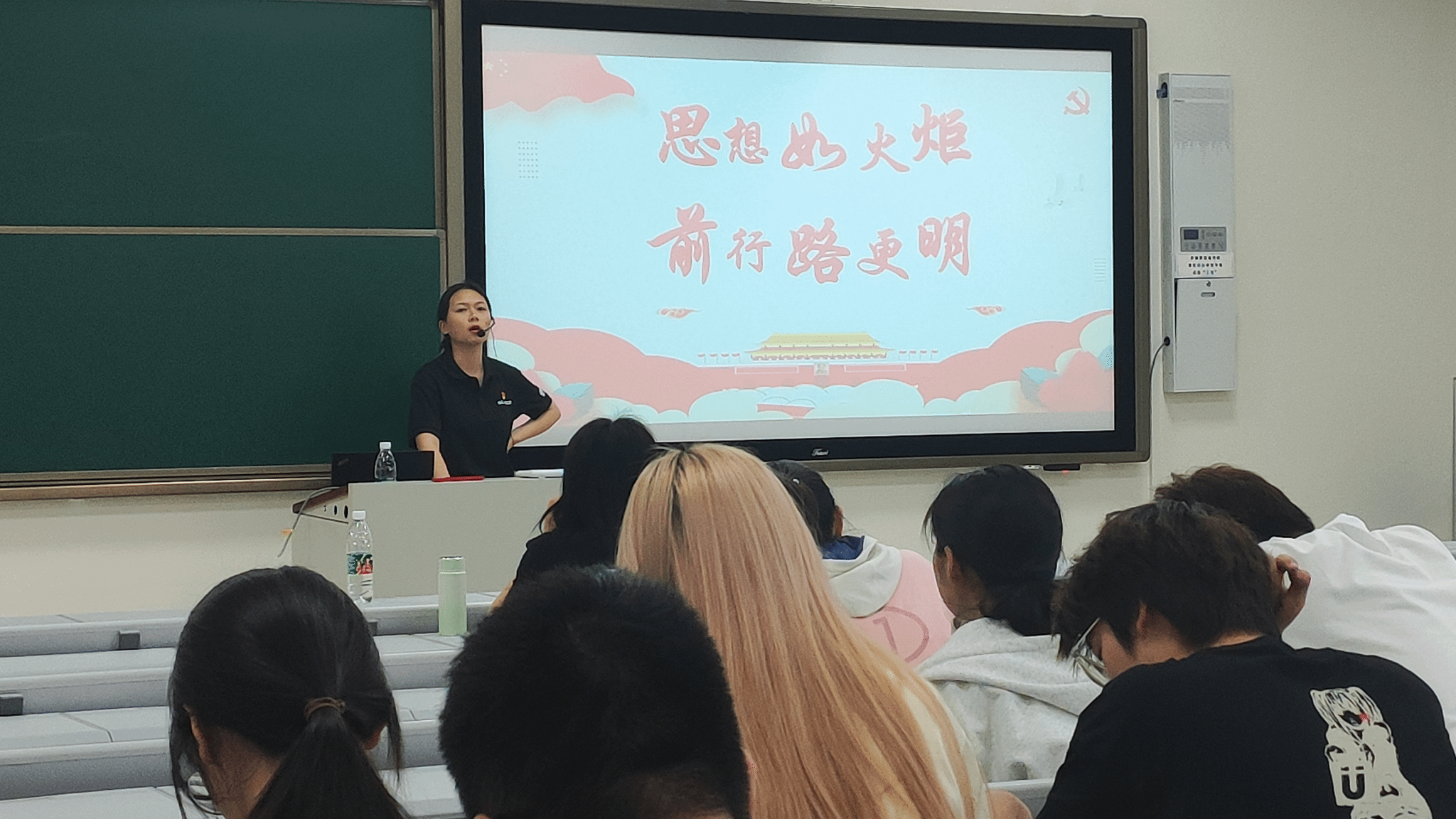 于博伦在学院2023入团积极分子培训团课上,以“党的理论”为主题对新发展团员们进行理论教育,在课堂中,于博伦老师从马克思主义讲到习近平新时代中国特色社会主义思想,并讲述何为中国特色社会主义理论体系及其重要意义,强调“思想如火炬,前行路更明”,希望入团积极分子们能学习新思想,争做新青年。
