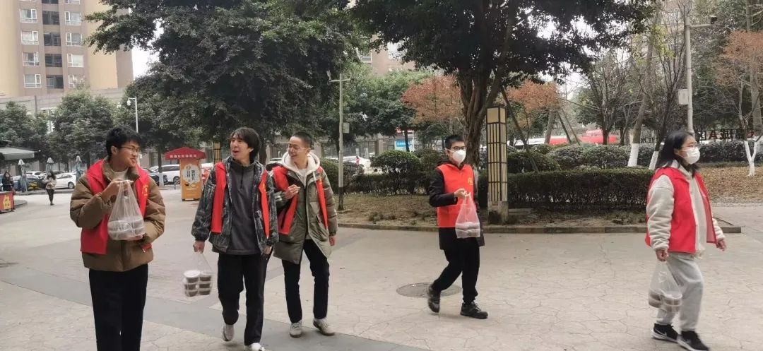 首先,实践队员们熬制了腊八粥,在进行分装后将粥送至预送名单上的每户人家,向小区居民表达节日祝福。随后,实践队员们对小区内的困难居民和高龄居民给予特别照顾,分发了围巾和手套等过冬物品。最后,实践队员走进困难家庭以及高龄独居老人家中,与他们互动交流,更深入地了解他们的需求并向社区进行反馈。