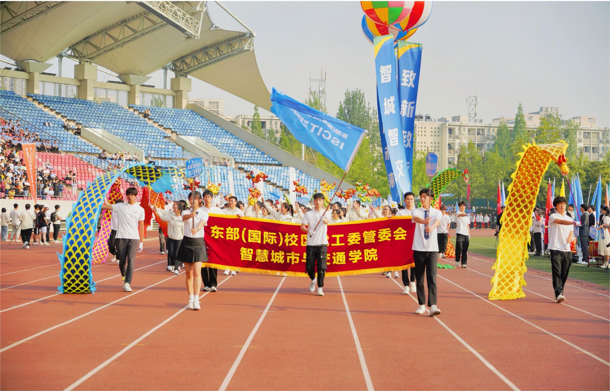 秉持初心,砥砺奋进,致力于打造未来大学校园样板,担当成渝地区高质量发展‘增长极’‘动力源’的生力军!”随着主持人介绍,师生方阵“智城智交,致新致远,心怀山海,智向未来!”的口号声响彻田径场上空,传递智慧的宣言:这场力量与速度的盛宴,参赛师生运动员蓄势待发,势不可当!未来,教职员工也将以同样的热情与活力,投入到东部(国际)校区的建设之中,积极探索、踊跃开拓、拼搏进取!