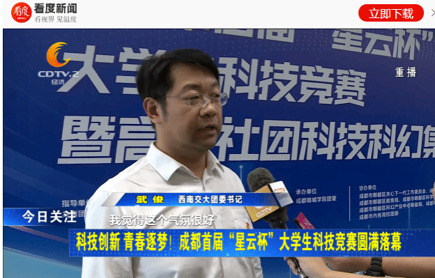 据悉,该活动的开展旨在深入学习贯彻习近平新时代中国特色社会主义思想,全面落实党的二十大精神,宣传习近平总书记对科技创新和科学普及的战略擘画,推动高校青年的科学兴趣,培养其科学思维、创新精神和实践能力。活动现场,校团委书记武俊在接受成都电视台记者访问时表示:“本次大赛现场科创氛围热烈,不但对于前来参赛的高校学生来说是一种知识的提升,同时对于前来观赛的小朋友们,也有利于激发他们的科学思维,培养实际动手能力,以适应未来社会发展的需求。”