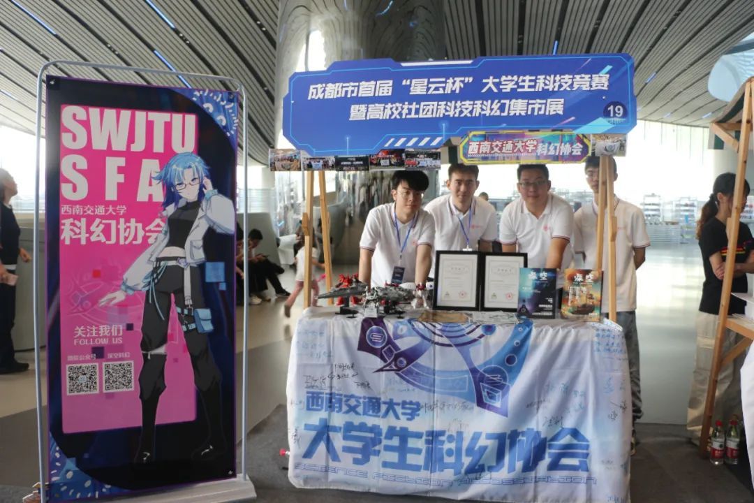 5月12日下午,成都市首届“星云杯”大学生科技竞赛暨高校社团科技科幻集市展在成都(科学)科幻馆举行。我校“花开富贵”团队参加大学生科技竞赛,科幻协会参加高校社团科技科幻集市展活动。