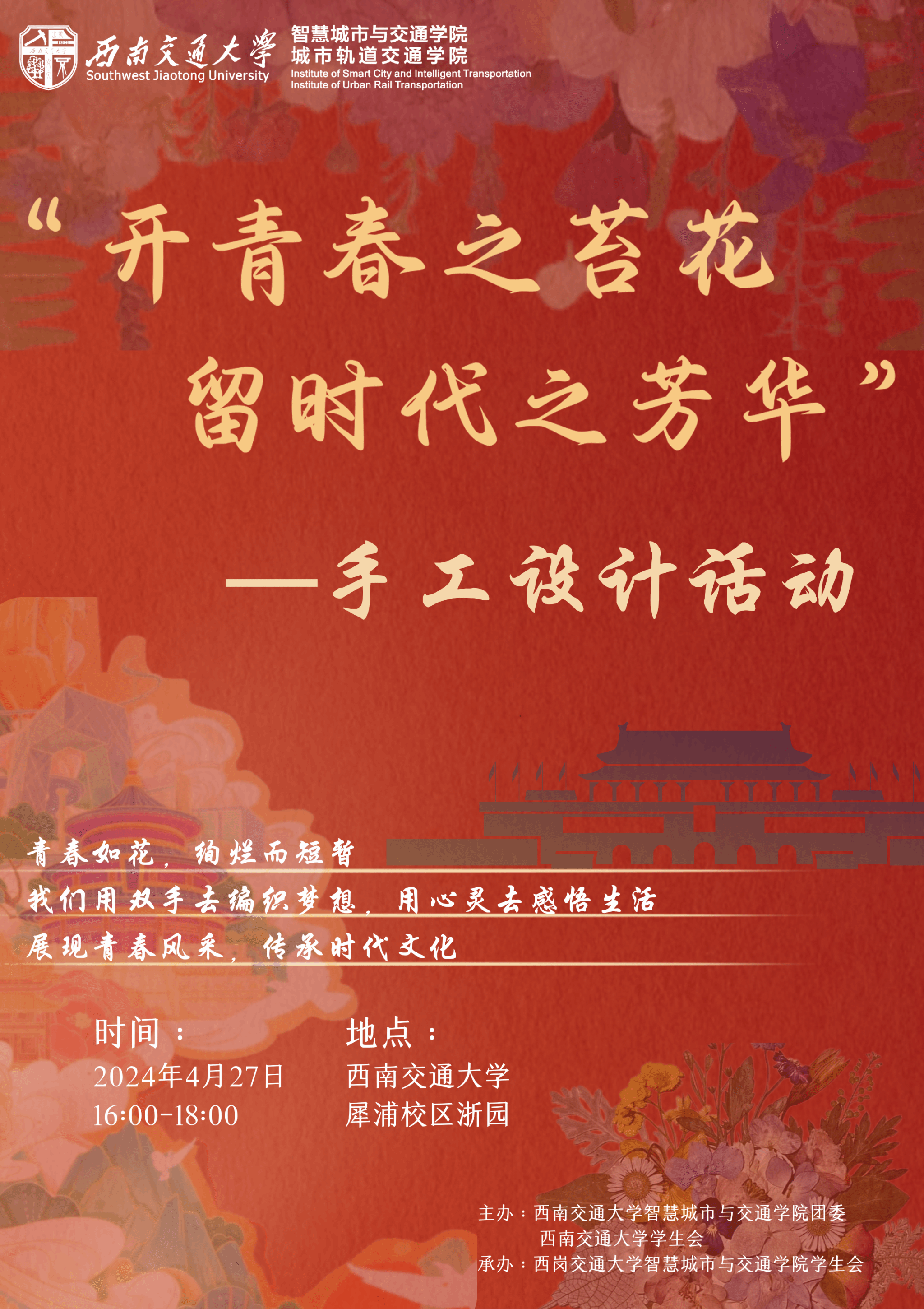 为引领青年学子传承五四精神,坚定理想信念,4月27日下午,由av影片 学生会组织开展的“开青春之苔花,留时代之芳华”手工设计活动在犀浦校区浙园顺利举行。