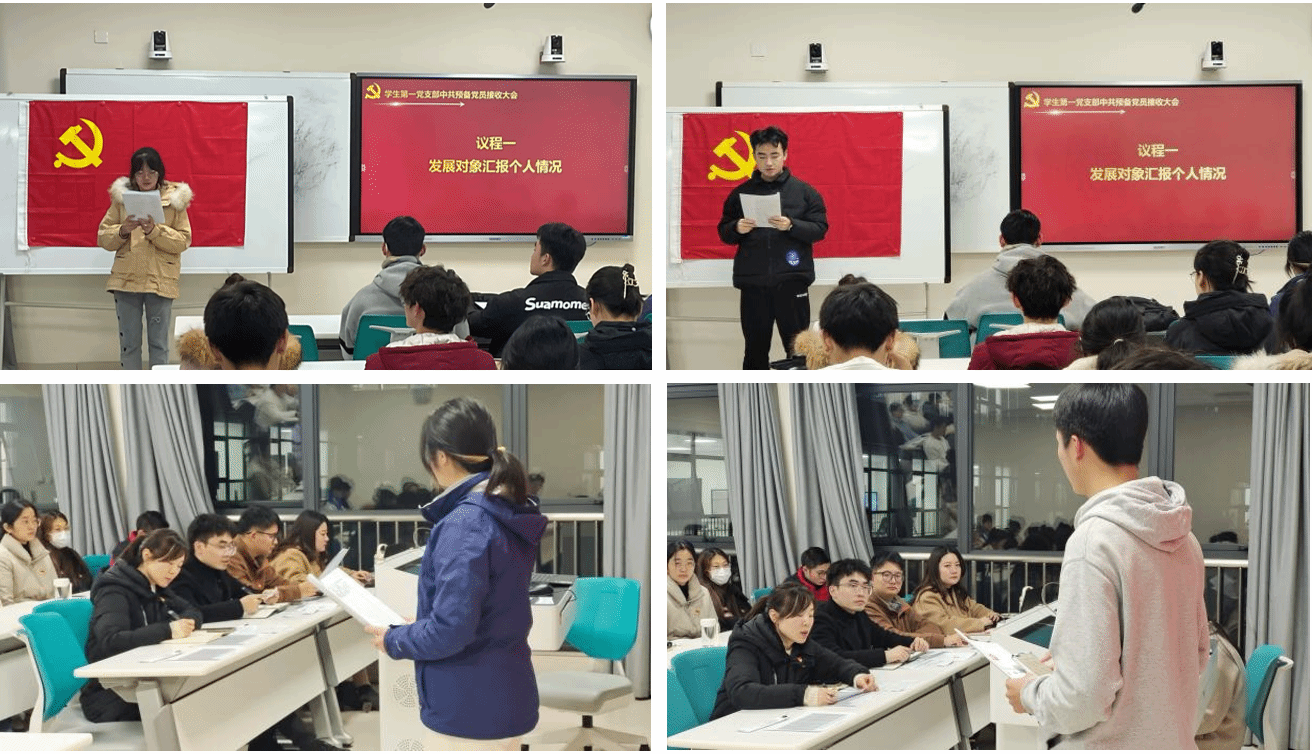 张旭等17名发展对象围绕思想政治、入党信念、自身表现等方面依次汇报个人情况,入党介绍人介绍发展对象的有关情况并表明意见。