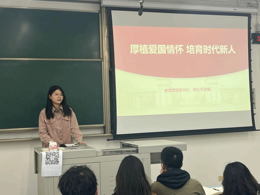 之后,熊伟华同志对教育部党组书记、部长怀进鹏在《求是》杂志发表的署名文章《厚植爱国情怀 培育时代新人》进行了学习分享,介绍了爱国主义法的精神实质、保障措施等内容。谢星羽、陈家正等同志积极回答分享了作为一名大学生应怎样厚植爱国主义情怀,履行法定职责的问题。