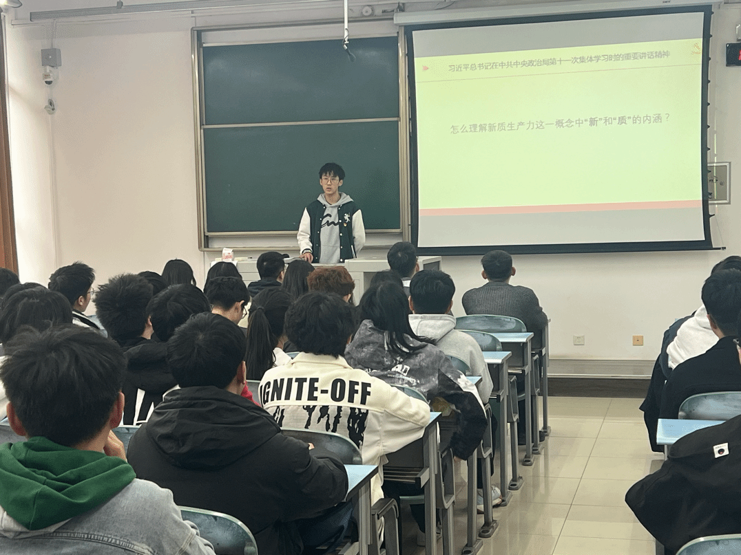 首先,张艺凡同志领学习近平总书记在中共中央政治局第十一次集体学习时的重要讲话精神,带领与会人员学习“新质生产力”的3个特征、3个催生要素和3个方面的加快发展措施。他结合自身专业和学习经历分享了自己对于新质生产力的理解与感悟。他号召全体同志,作为新时代青年,要不断增强自身的学习能力,提升知识储备和专业水平,勇于创造性地开展跨学科交叉创新,努力成为创造新质生产力的应用型人才。刘冠男、文俊霖等同志围绕新质生产力这一概念中“新”和“质”的内涵、新质生产力与高质量发展的关系等问题进行了研讨。