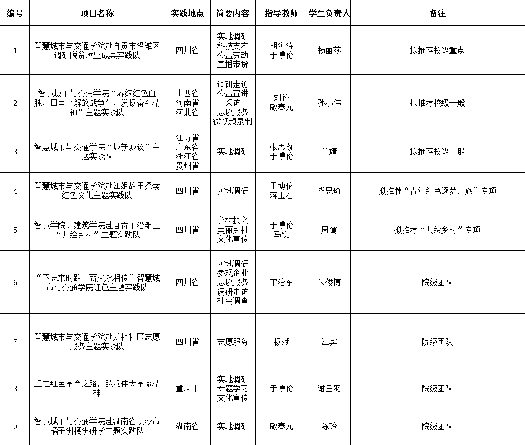 自《关于开展av影片 2022年大学生暑期“三下乡”社会实践活动的通知》发布以来,学院广泛宣传,同学们积极参与,全院共组建9支社会实践活动队。经学院团委汇总审核,立项结果如下: